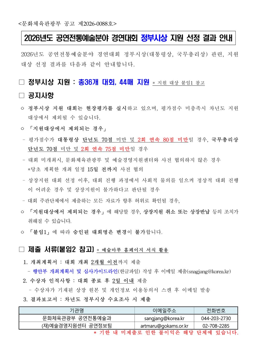 경연대회 축소 및 폐지의 경우 대상자에게 별도 안내를 제공하지 않으므로,