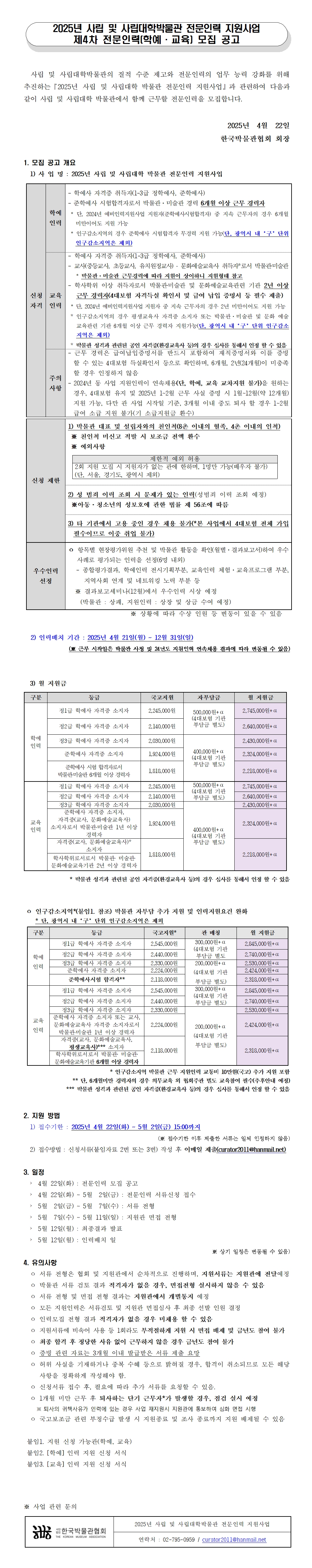 [한국박물관협회] 2025년 사립 및 사립대학박물관 전문인력 지원사업 4차 공고
