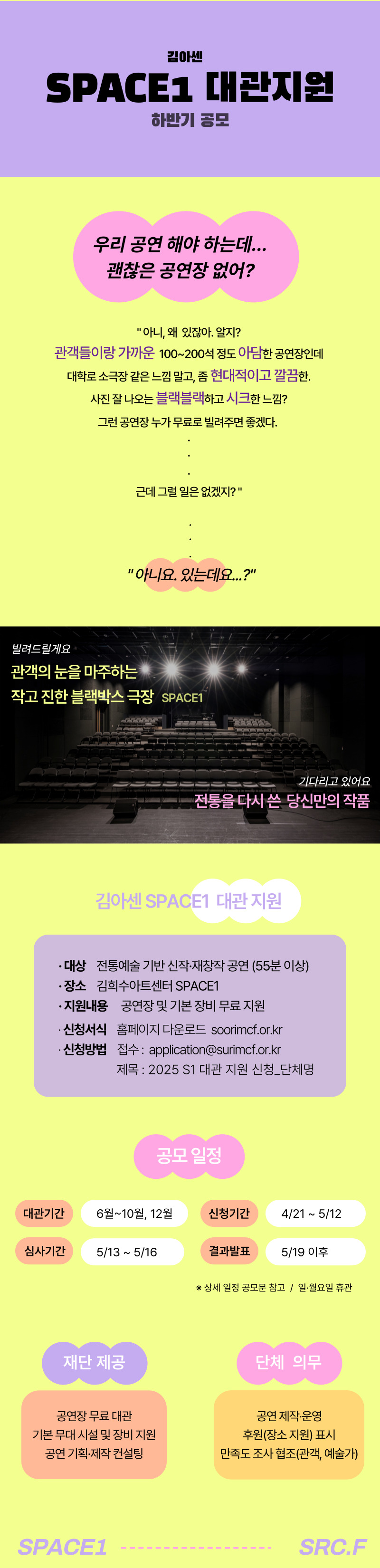 SPACE1 대관 지원 - 2차 공고(하반기)