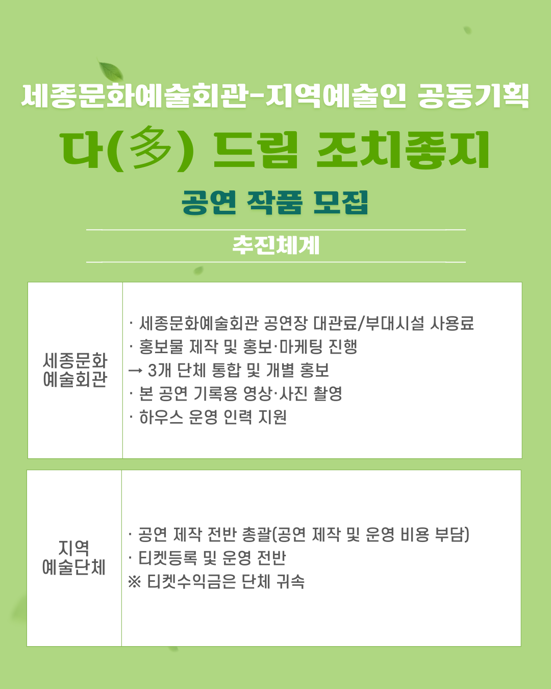 ★ 세종문화예술회관 세종문화예술회관-지역예술인 공동기획 사업 「다(多)드림 조치좋지」 공연 작품 모집 ★