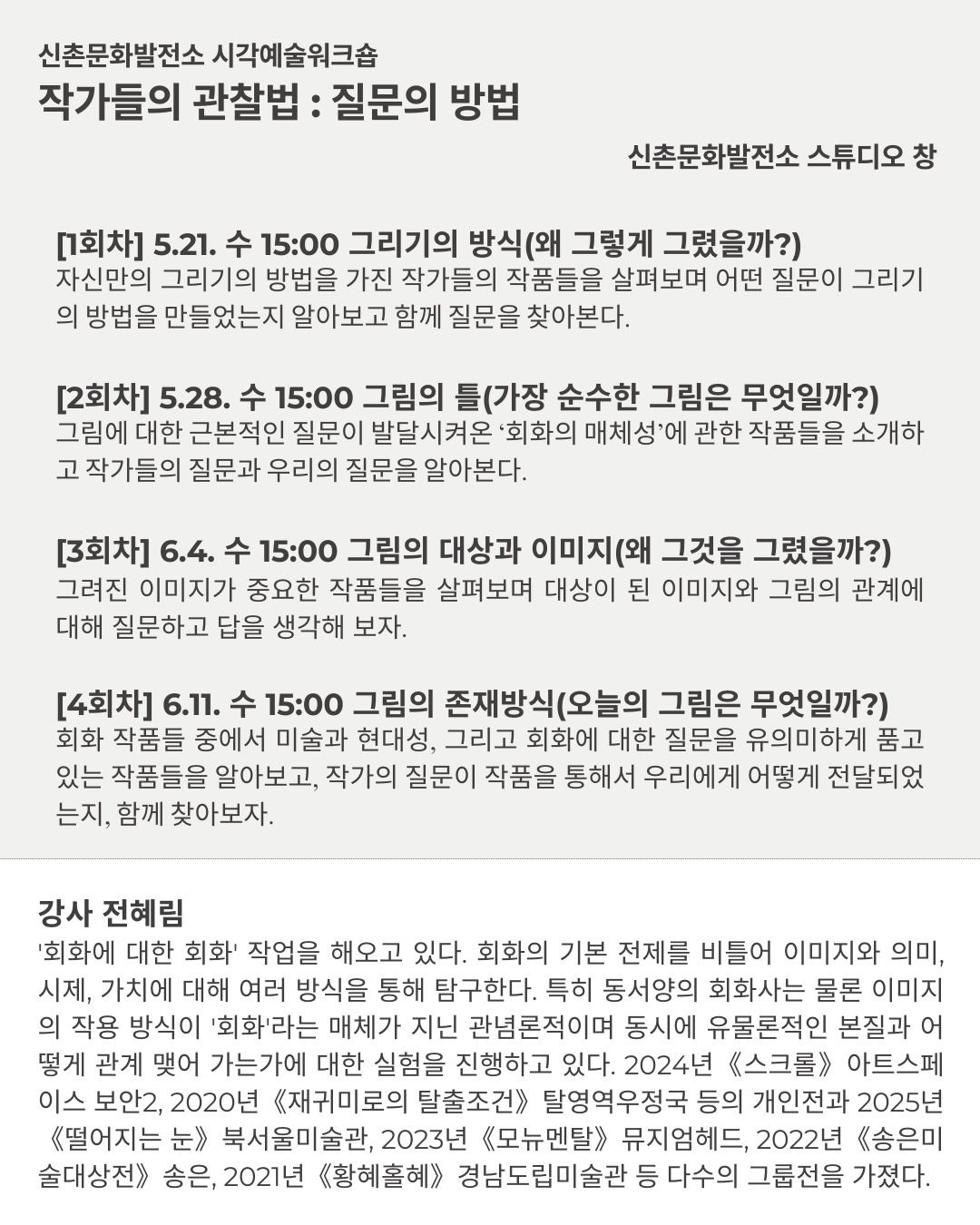 신촌문화발전소 시각예술워크숍 작가들의 관찰법 : 질문의 방법