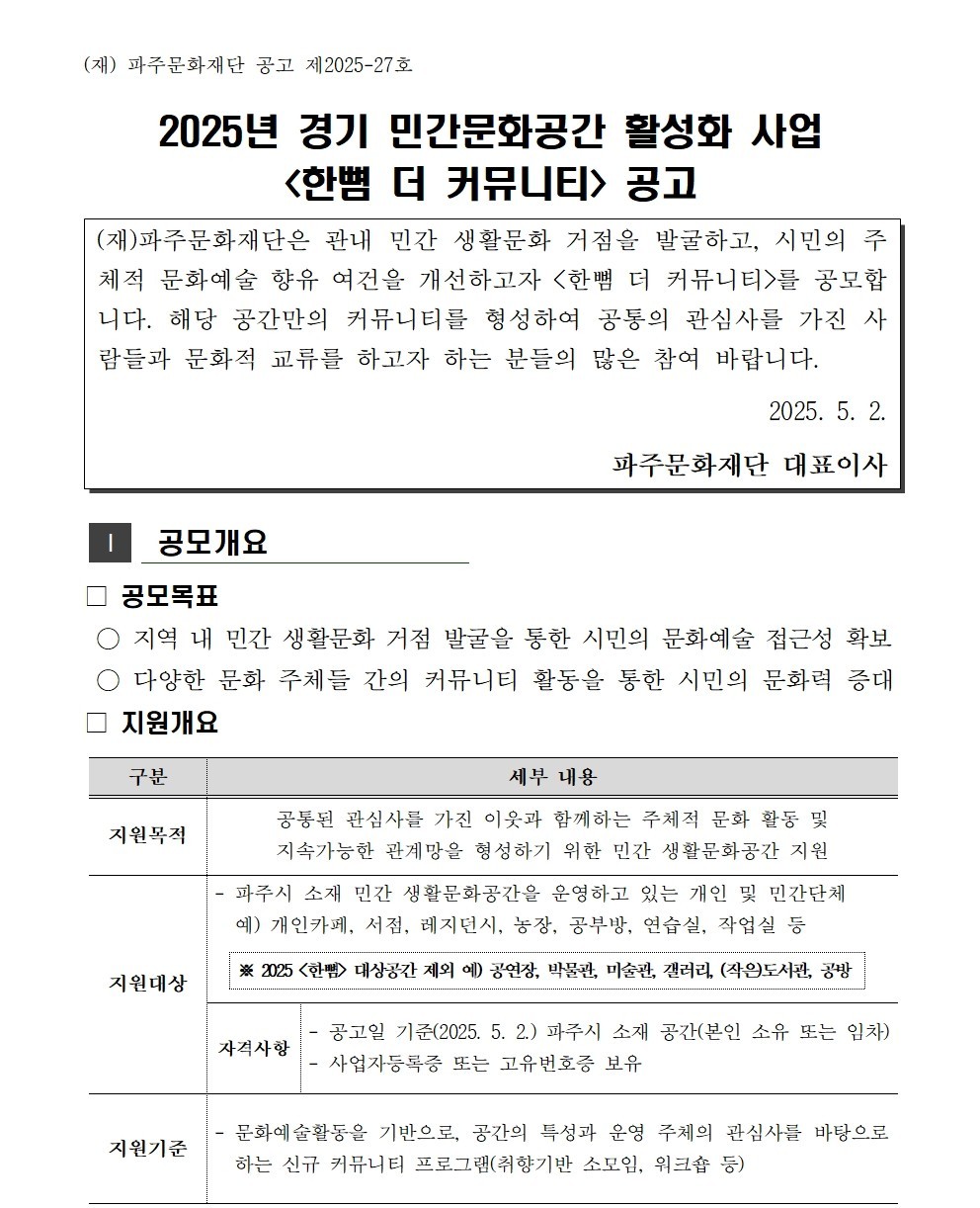 2025년 경기 민간문화공간 활성화 사업 <한뼘 더 커뮤니티>