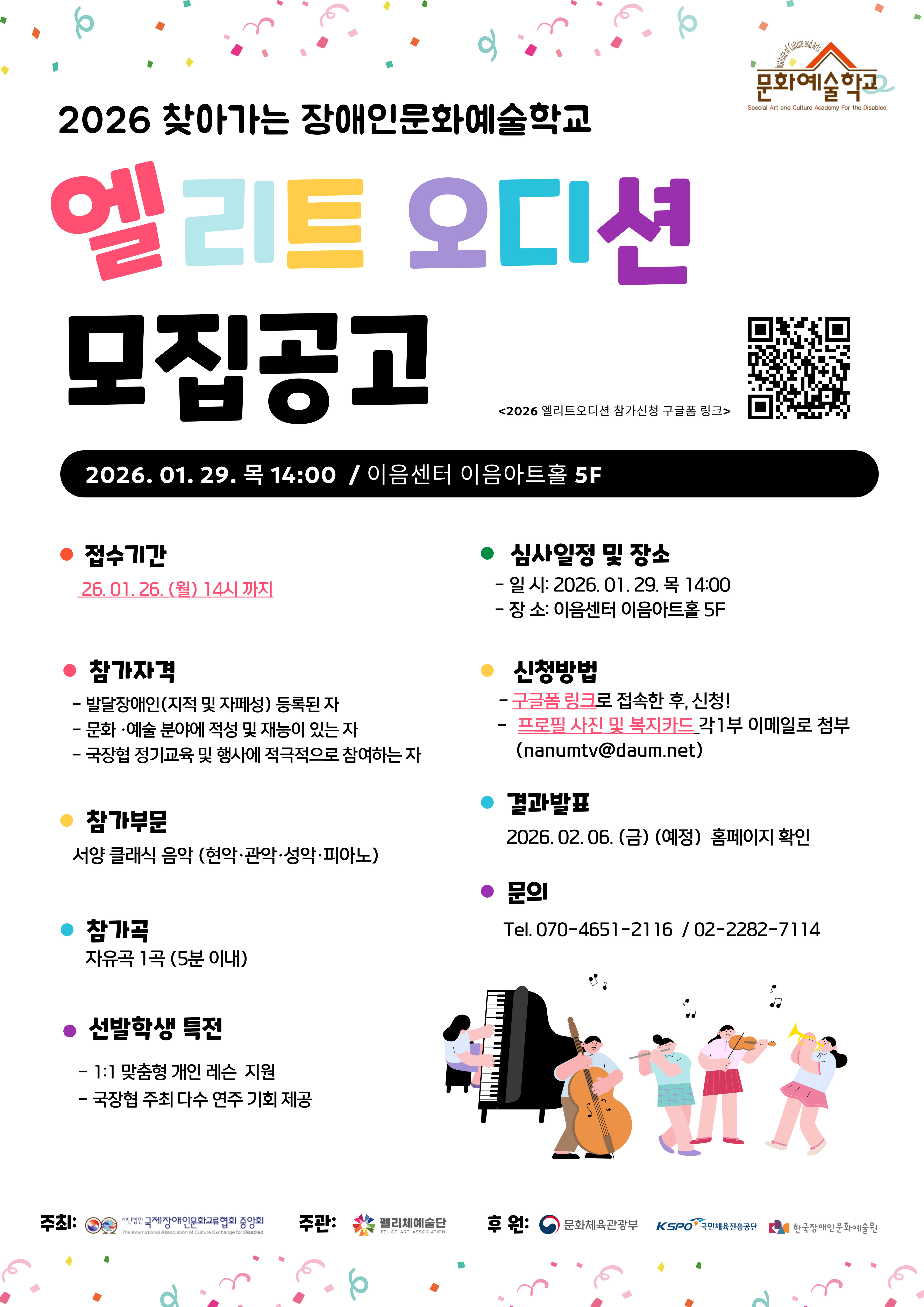 2026 찾아가는 장애인문화예술학교 엘리트 오디션 모집 공고!