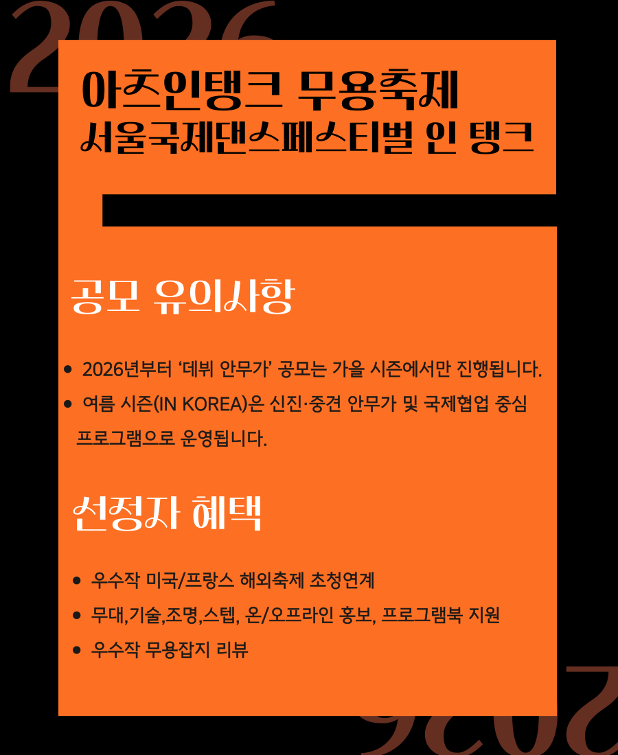 서울국제댄스페스티벌 인 탱크에서만 접수합니다.