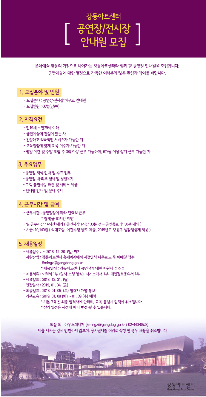 * 강동아트센터 홈페이지에서 자사 양식 다운로드 후 이메일 지원