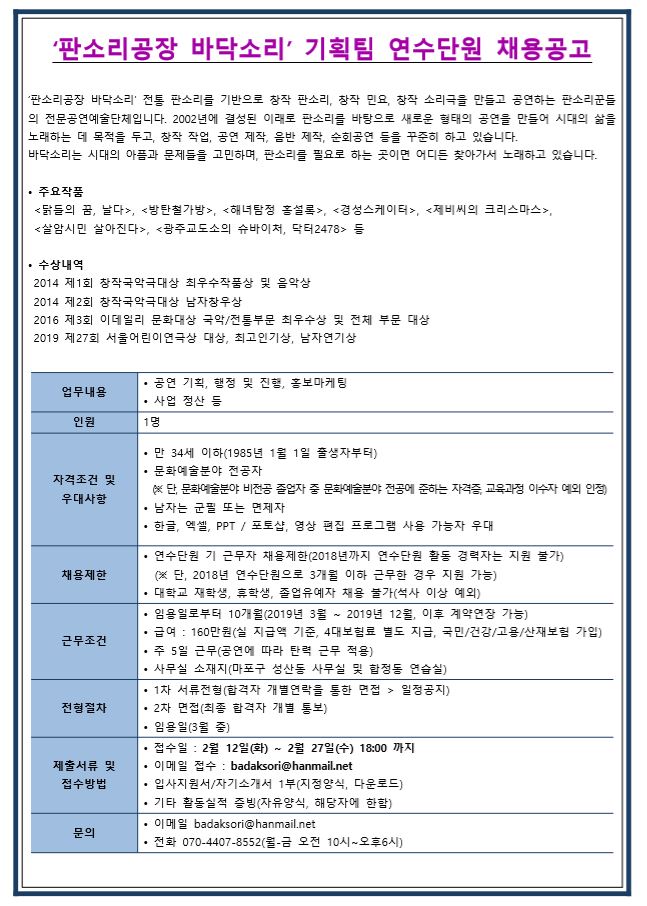 문화계 일자리 위젯을 문화예술 분야와 콘텐츠 산업계의 실시간 채용정보를 제공합니다.