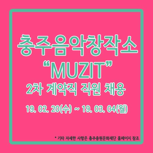 충주음악창작소 계약직 직원 2차 채용 공고