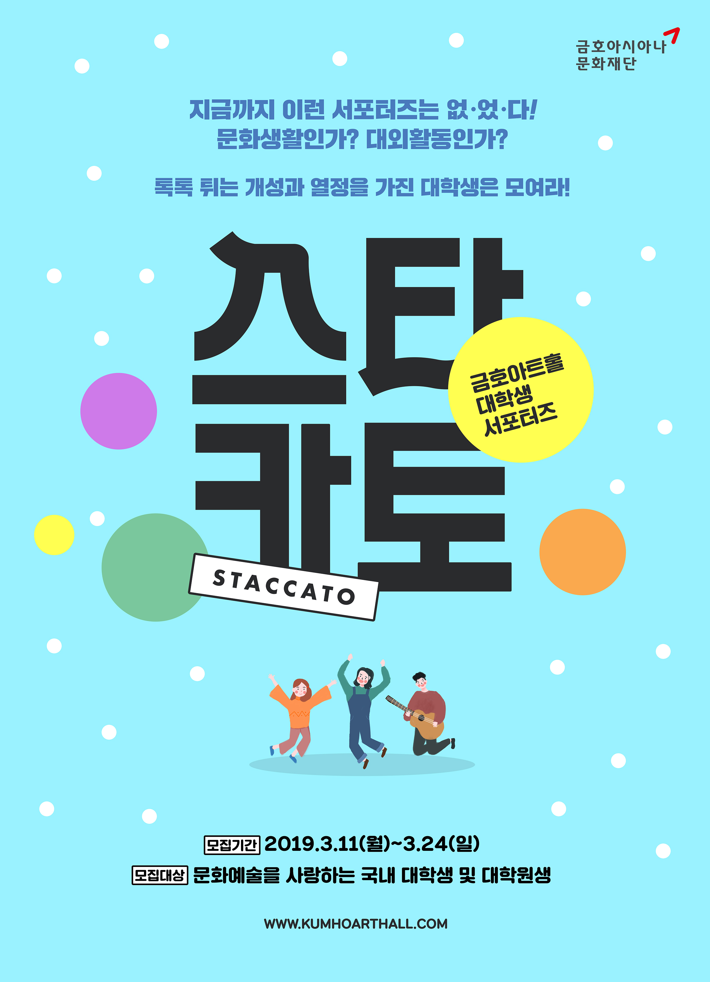 2019 금호아트홀 서포터즈 1기 '스타카토' 모집 공고
