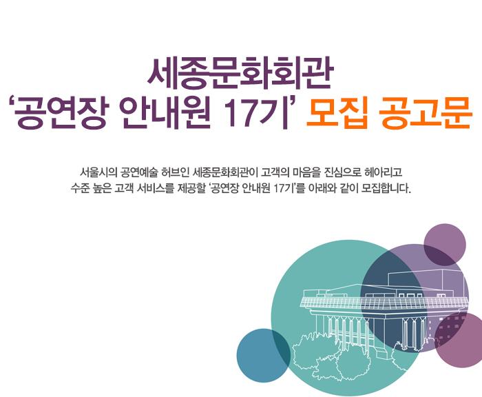 ※ 위 이메일은 공연장안내원 17기 채용 서류 접수 전용 이메일로 채용 외 기타 문의는 받지