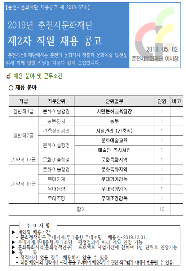 문화계 일자리 위젯을 문화예술 분야와 콘텐츠 산업계의 실시간 채용정보를 제공합니다.
