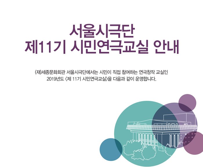 1. 목적 - 시민들이 자신 안의 예술을 발견하고 예술로 자신을 풀어내는 자발적 연극 창작체험 기회 제공 - 잠재된 창의력 개발과 실연의 경험을 통해, 시민들이 자생적으로 연극을 생활예술로 향유할 수 있는 저변 확대 - 공공성을 지닌 서울시극단으로서 시민들과의 소통과 유대를 강화