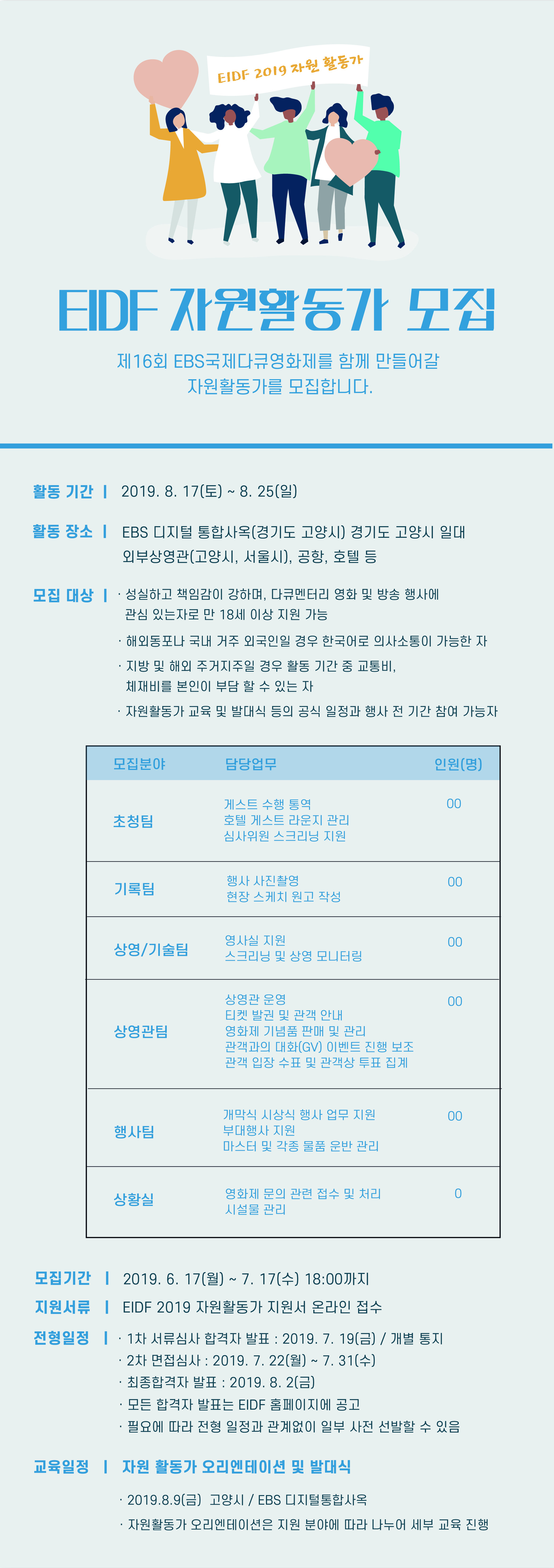 제16회 EBS국제다큐영화제(EIDF2019)에서 자원활동가를 모집합니다.