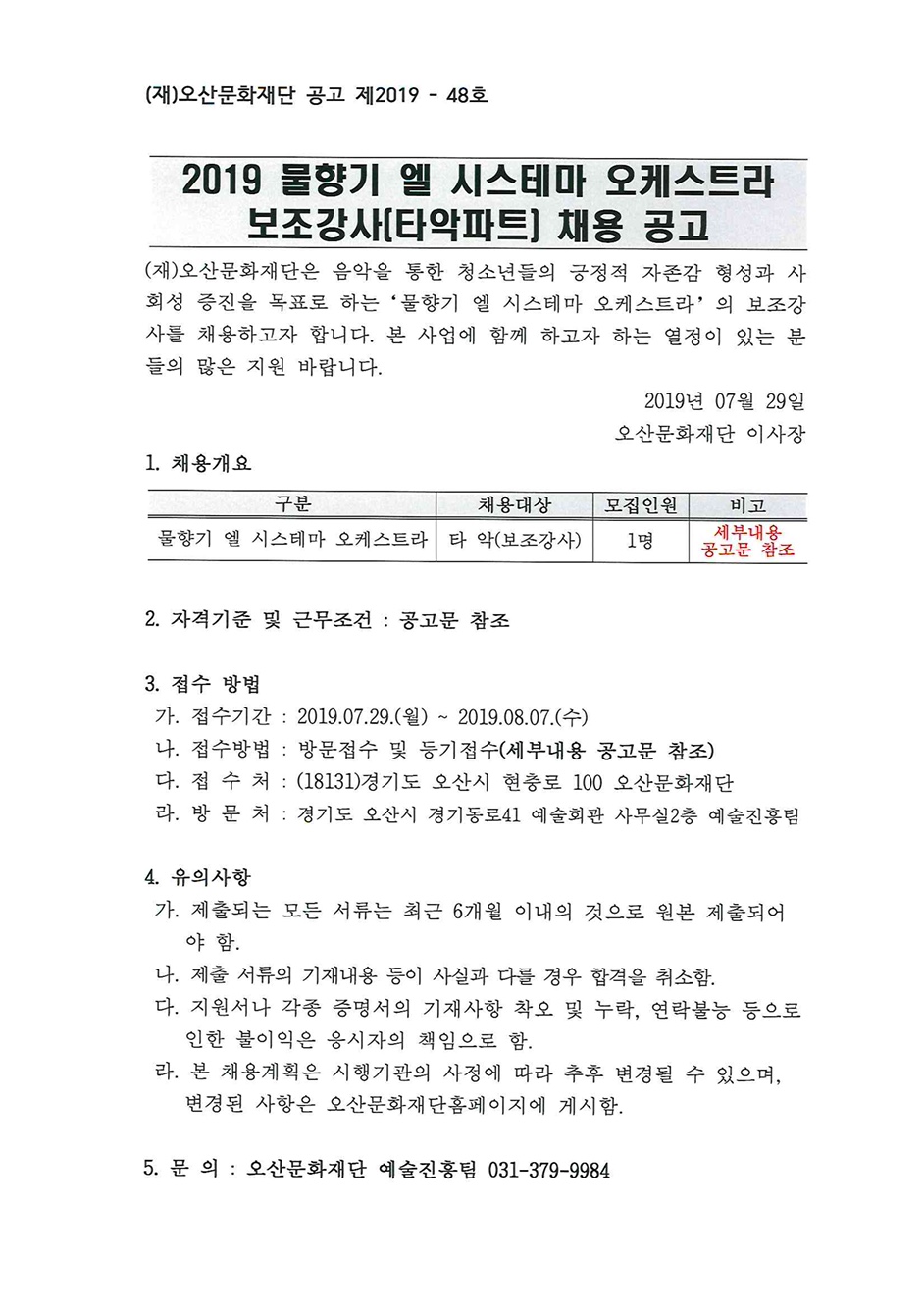 자세한 내용은 오산문화재단 홈페이지 공지사항을 참고해주세요.
