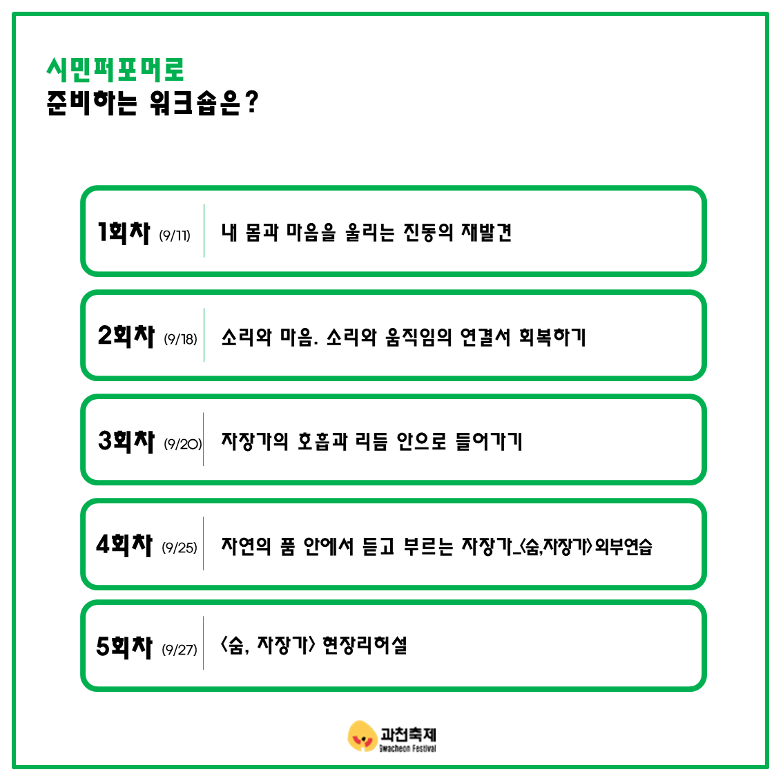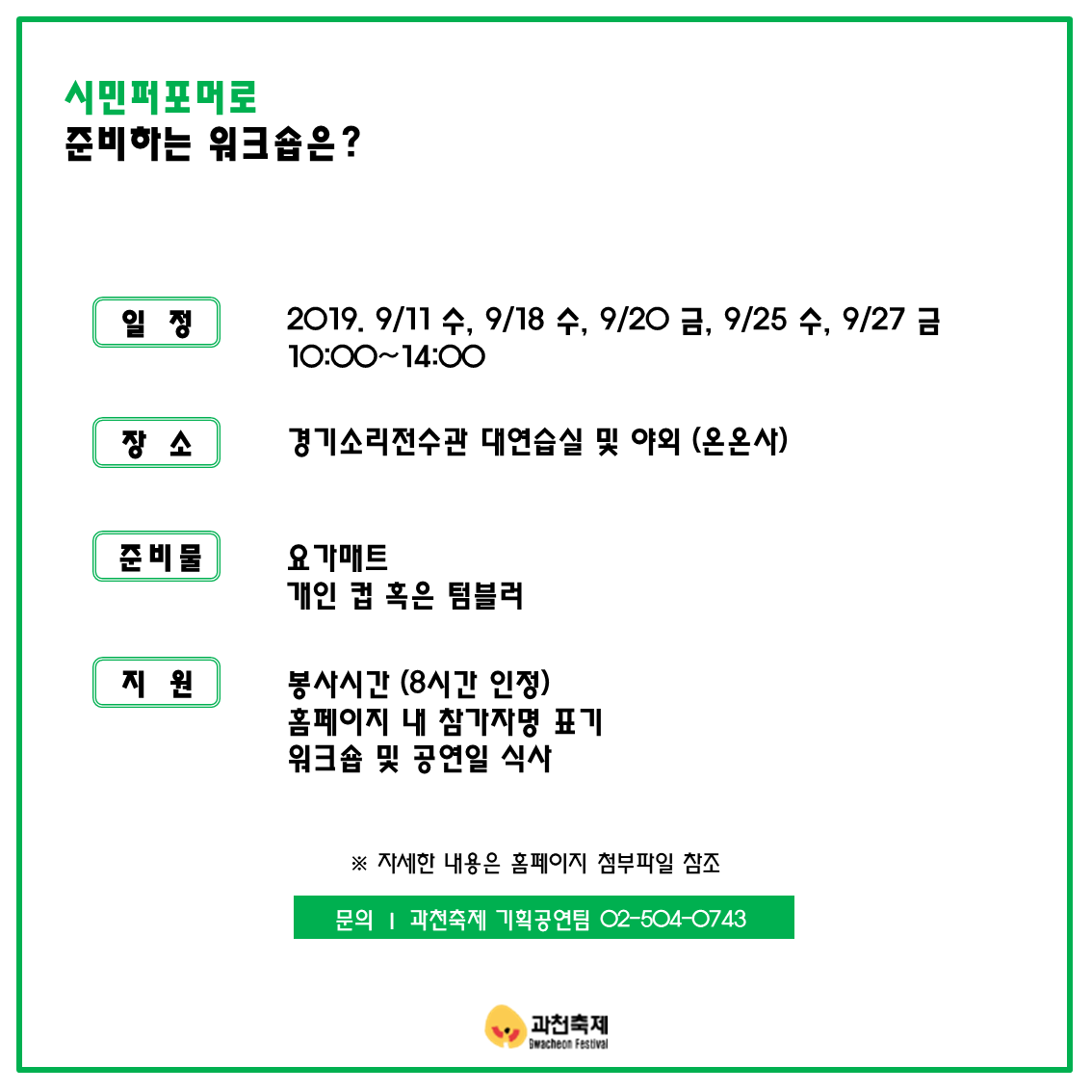 워크숍을 통해 스스로를 치유하고 열정과 진지함으로 공연을 만들어갈 시민 여러분의 참여를 기다립니다.