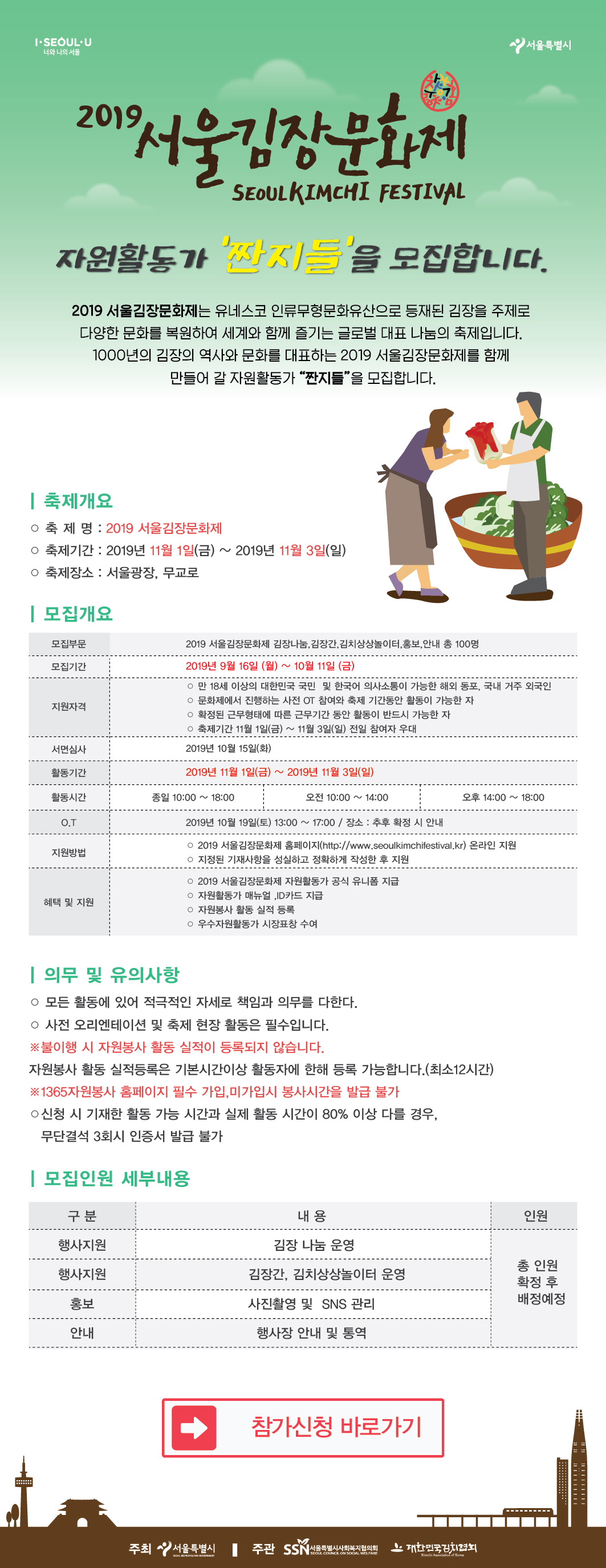 축제를 빛내줄 자원활동가 <짠지들> 모집합니다 11월 서울광장, 따뜻한 나눔, 서울이 김장하는 날