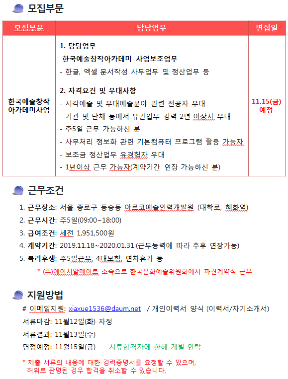 문화계 일자리 위젯을 문화예술 분야와 콘텐츠 산업계의 실시간 채용정보를 제공합니다.
