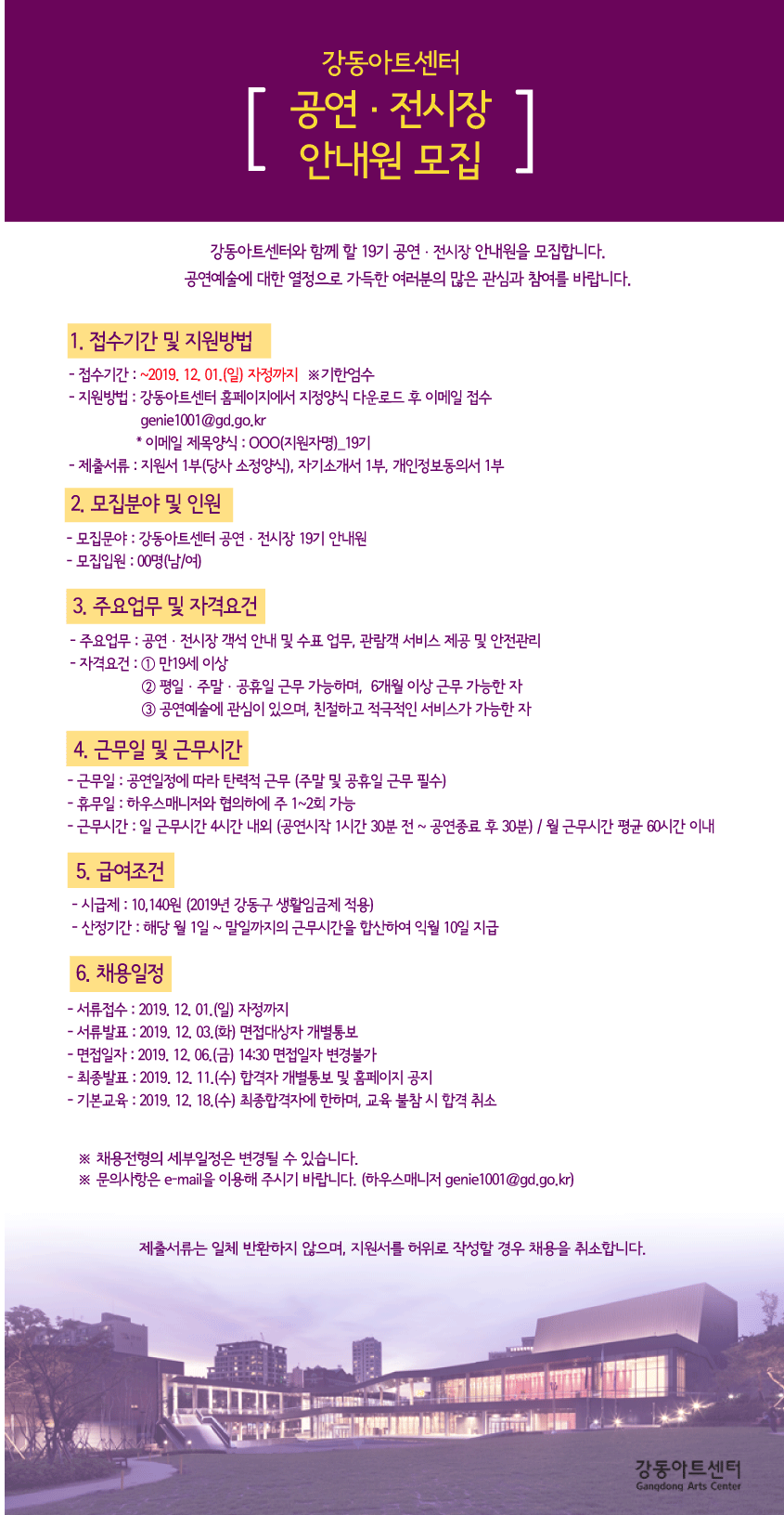 ※ 강동아트센터 홈페이지에서 자사 양식 다운로드 후 이메일 지원