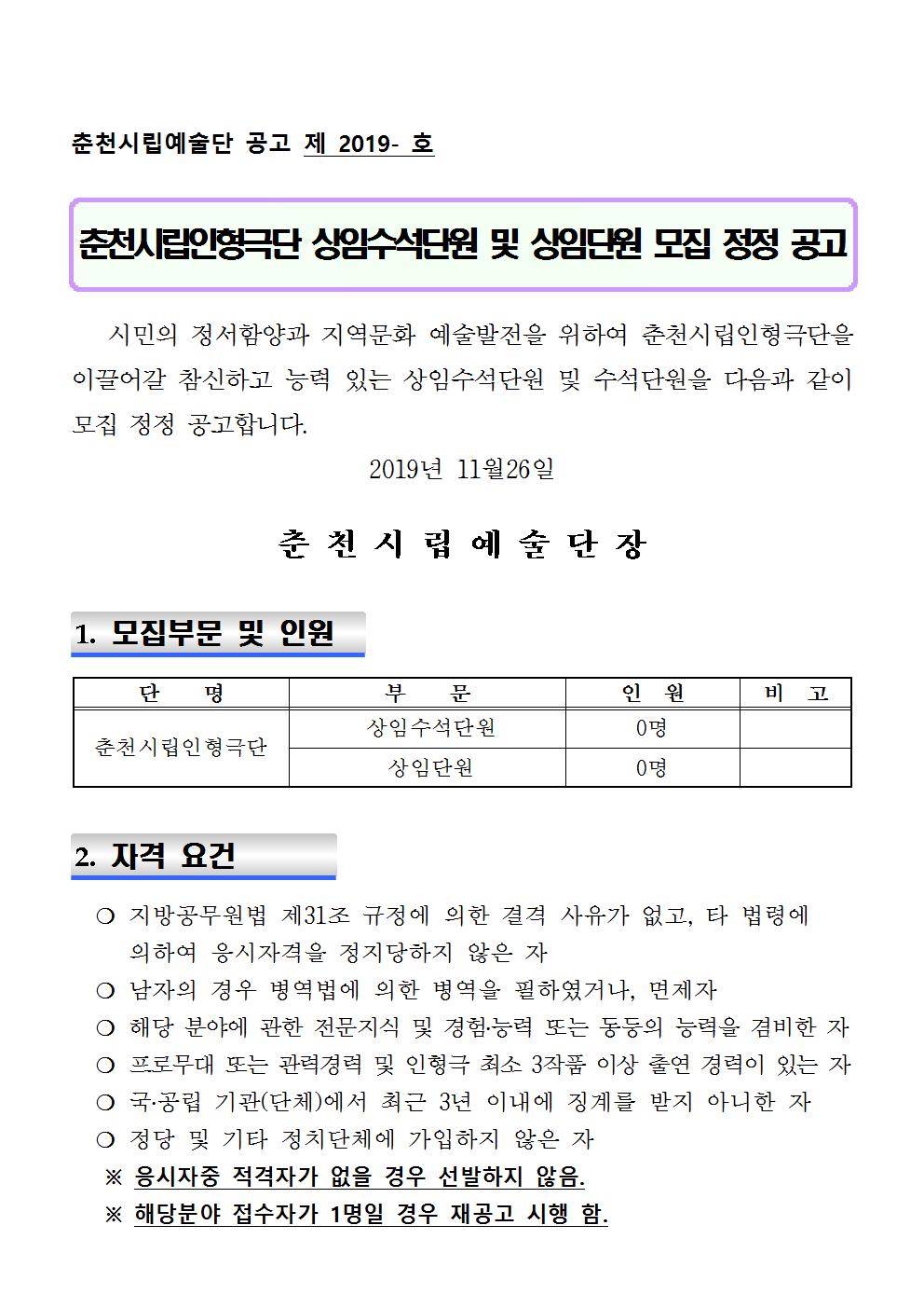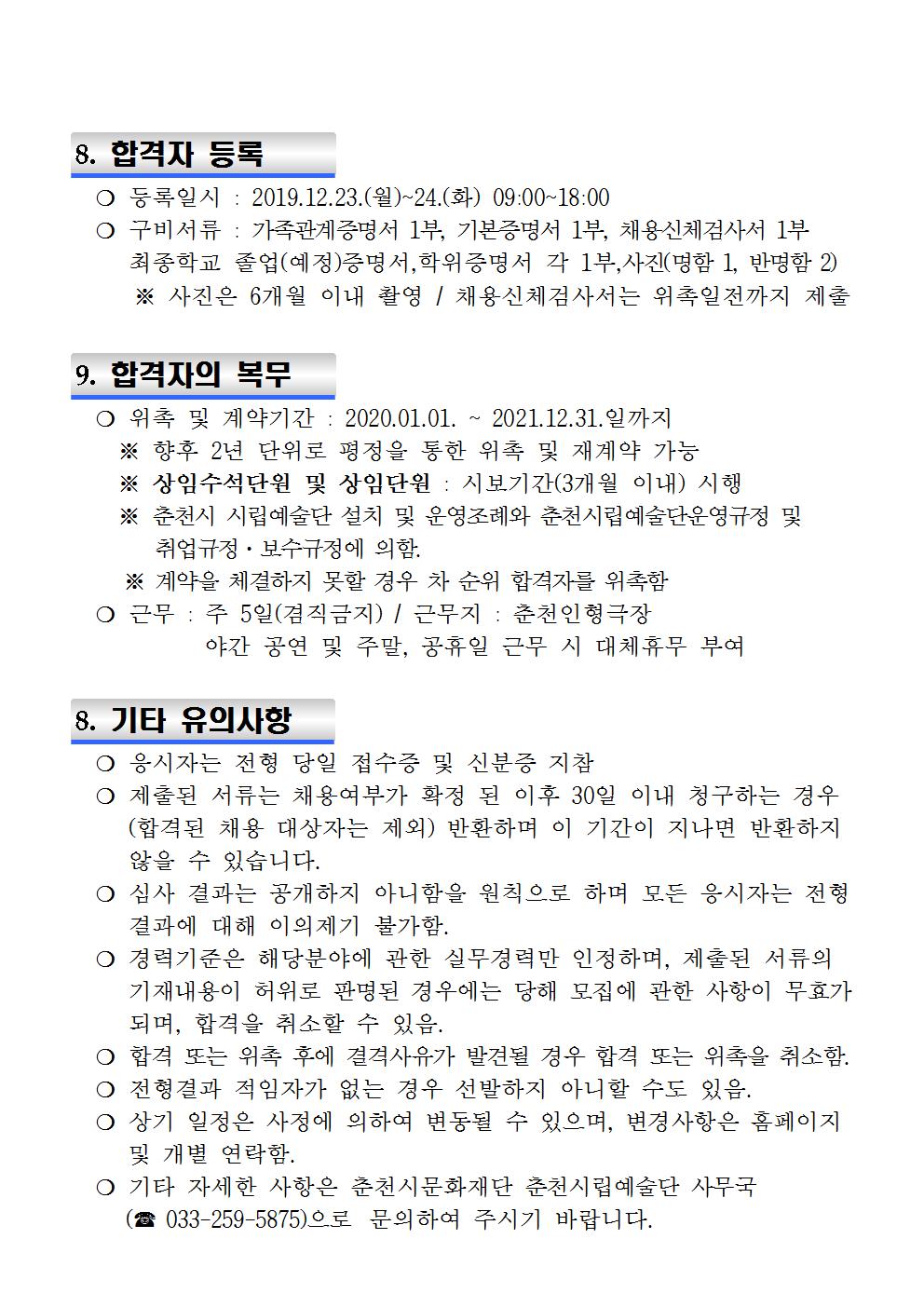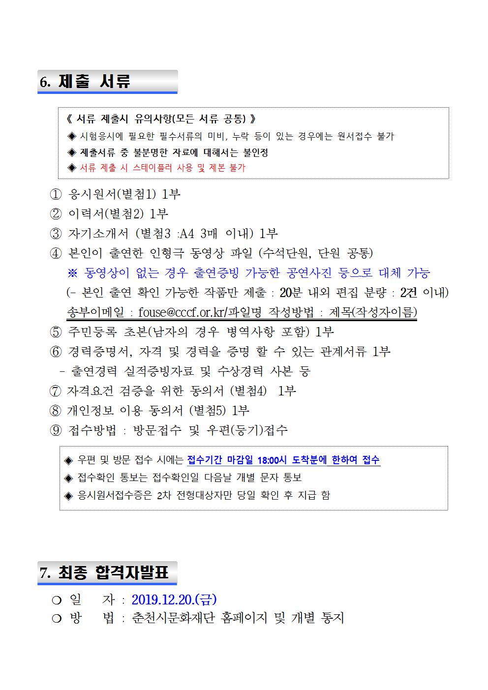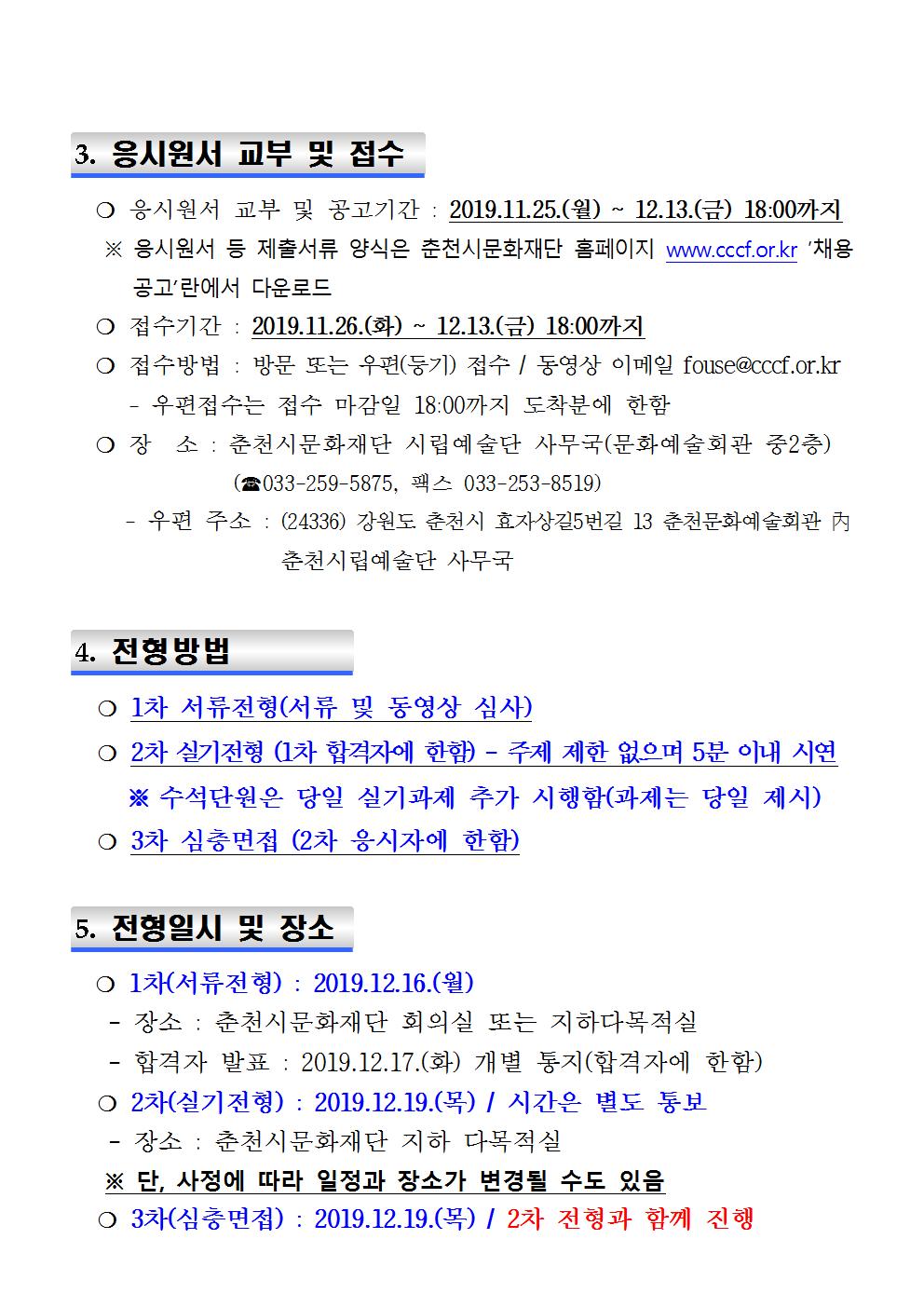 *춘천시문화재단 홈페이지 접속 후 붙임문서 작성 후 제출 요망