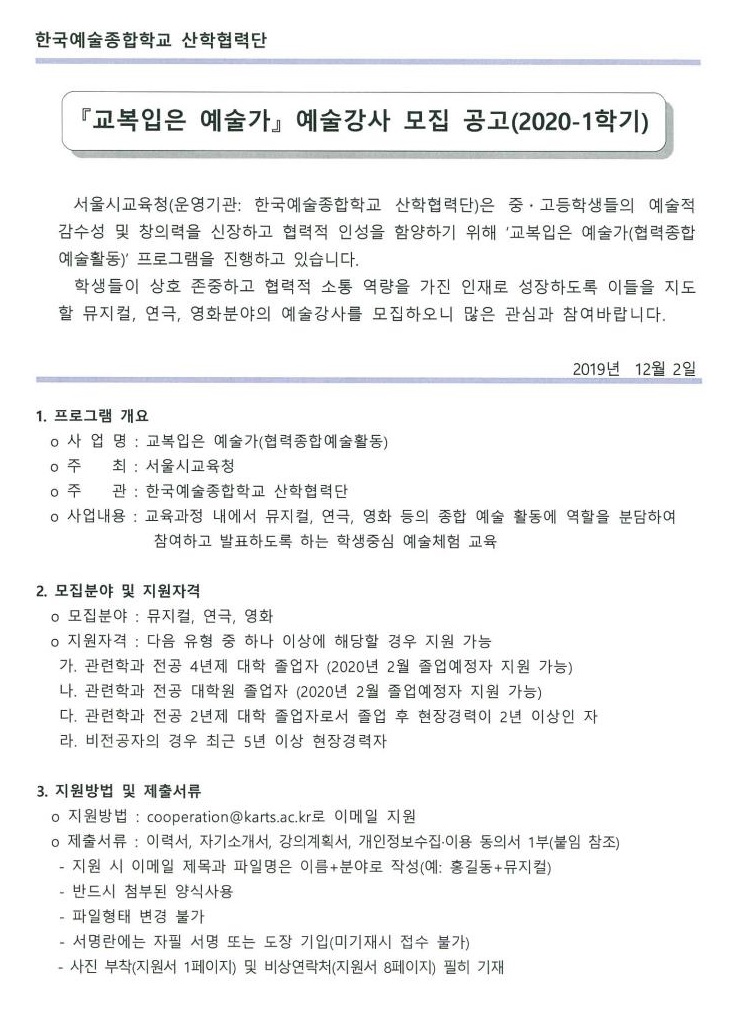 *지원서 양식은 홈페이지에서 다운로드 가능*