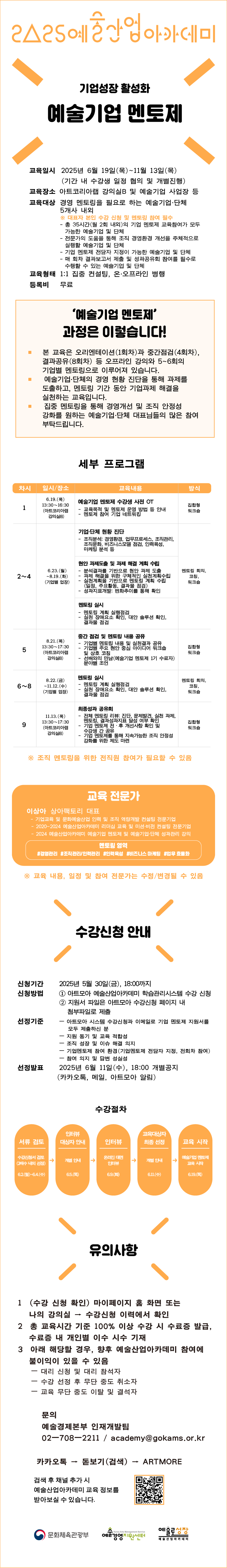 2025 예술산업아카데미 기업성장 활성화 <예술기업 멘토제> 수강생 모집