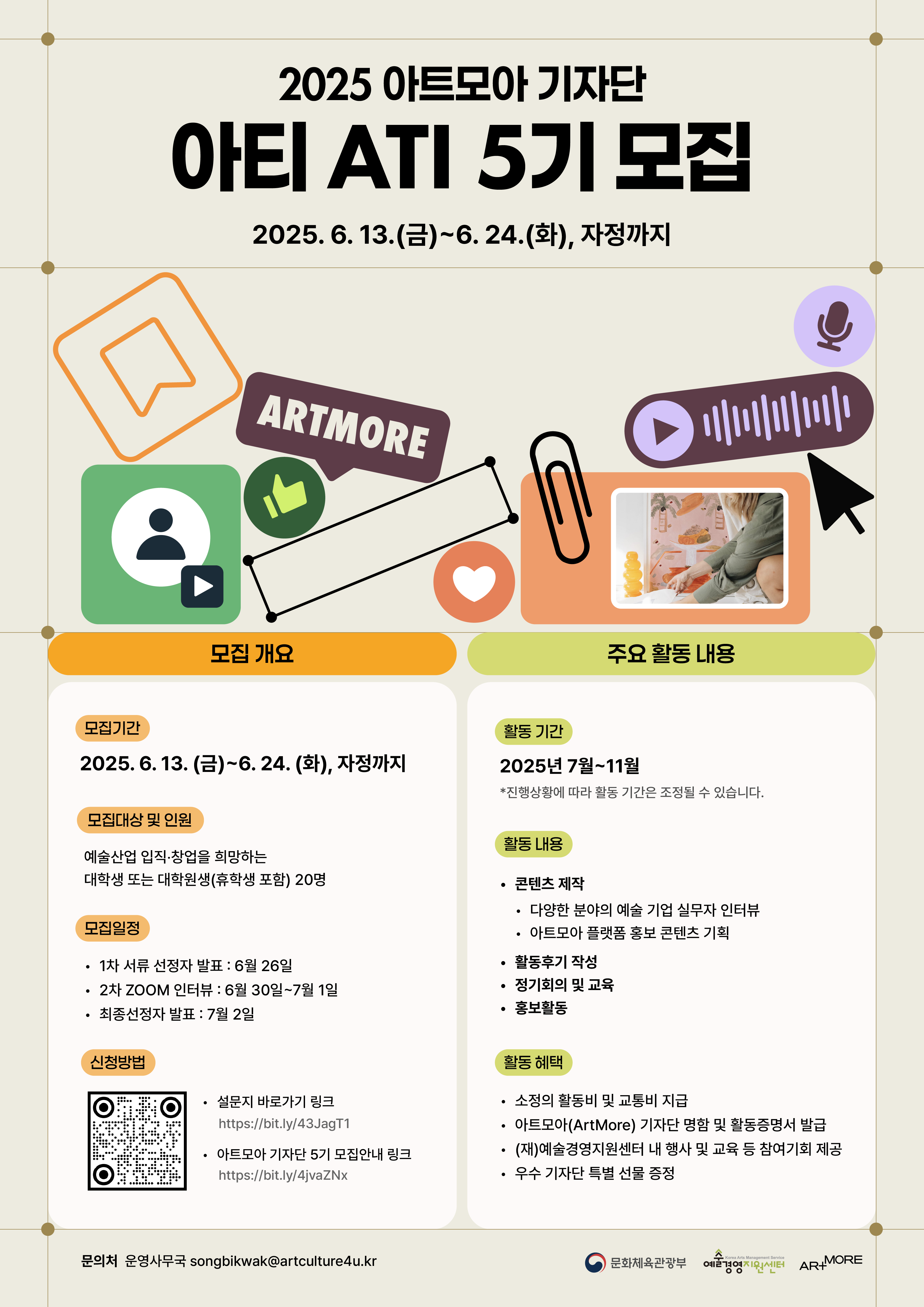 2025 아트모아(ARTMORE) 기자단 아티 5기 모집