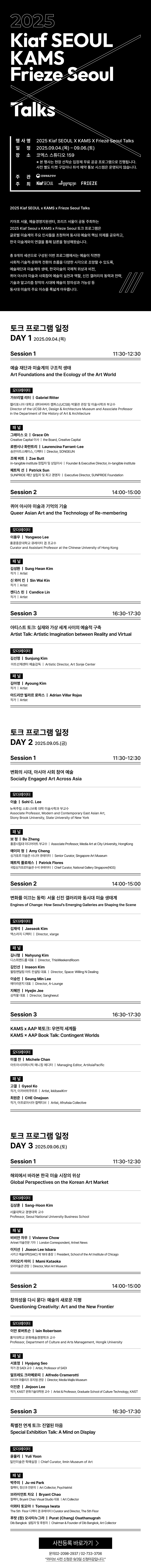 2025 Kiaf SEOUL x KAMS x Frieze Seoul 토크 프로그램