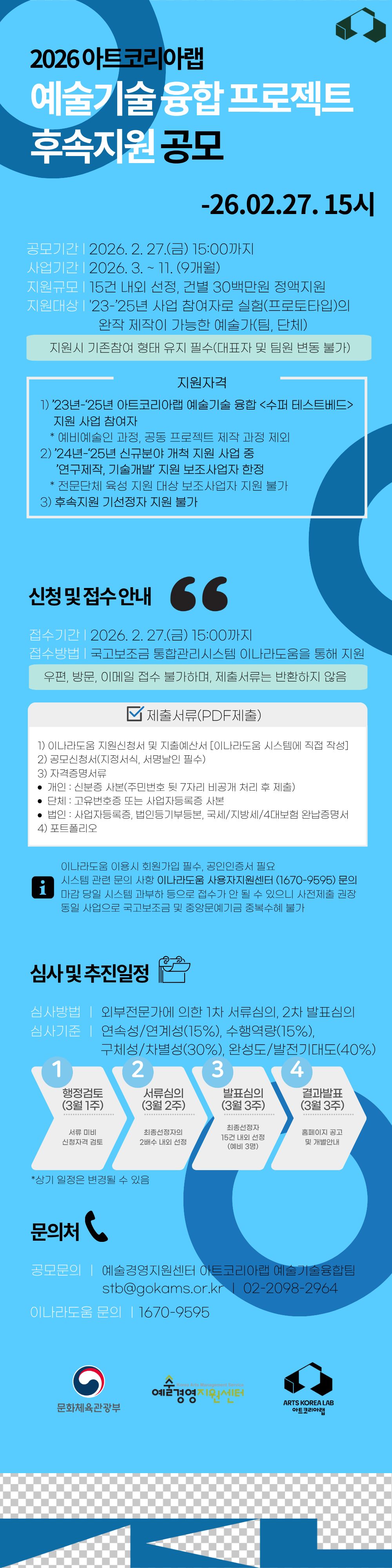 2026 아트코리아랩 예술기술 융합 프로젝트 후속지원 공모