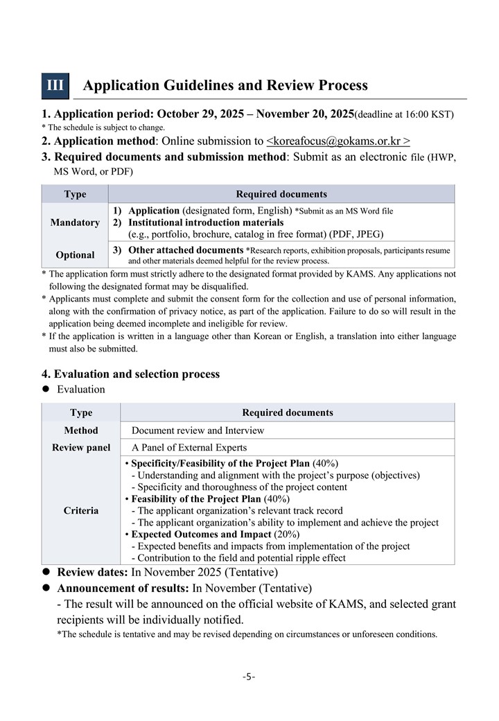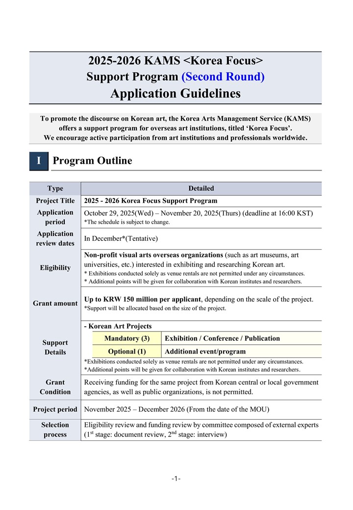 [1st Results Announcement] 2025-2026 KAMS Korea Focus Support Program