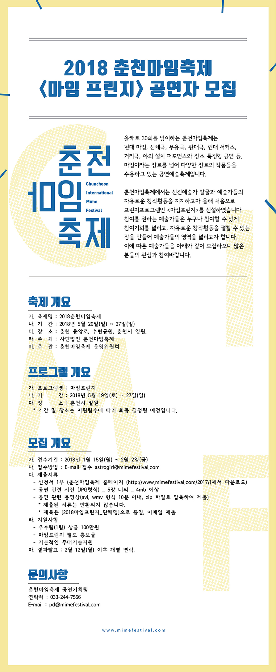 2018춘천마임축제<마임프린지> 참가공연팀 모집공고