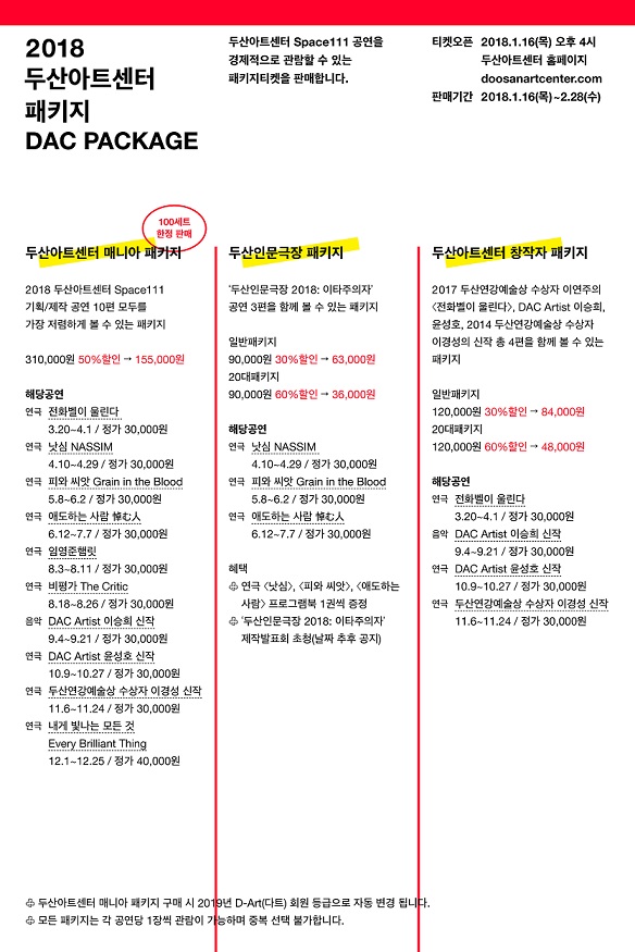 [두산아트센터] 2018 두산아트센터 패키지 판매! 최대 60%할인!