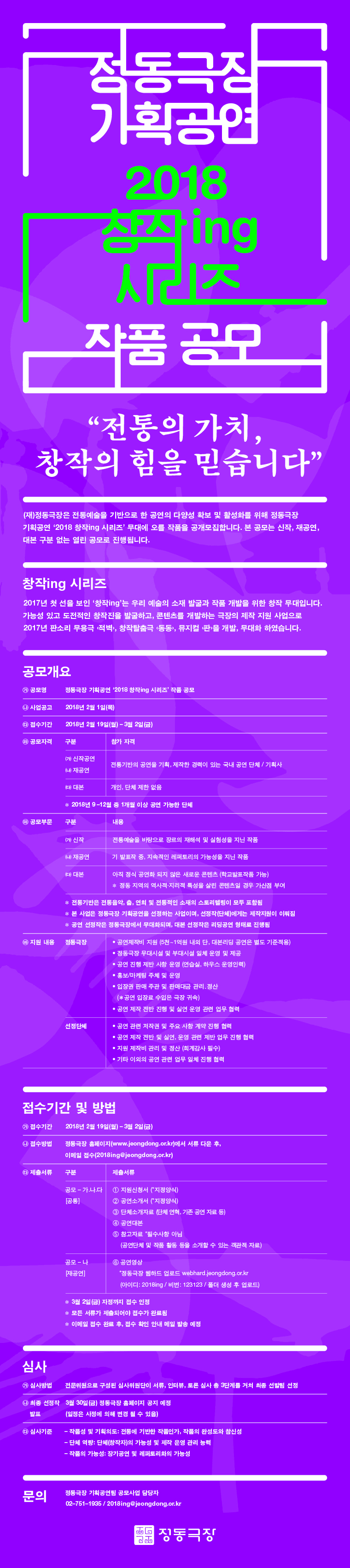 정동극장 기획공연 '2018 창작ing 시리즈' 작품공모