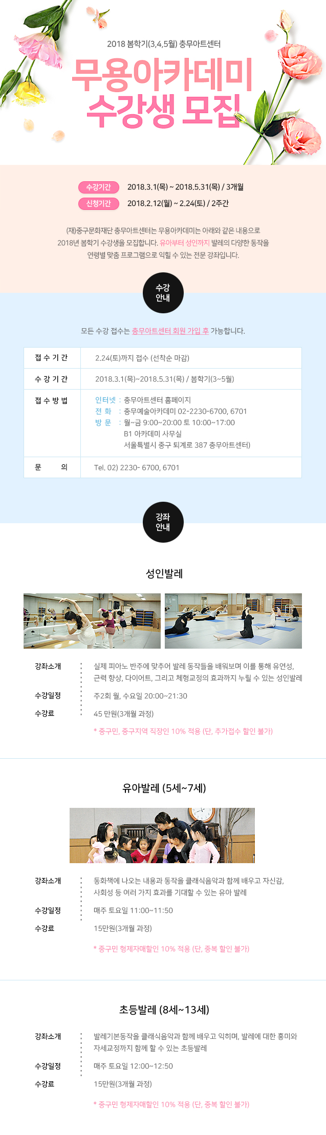 충무아트센터 무용아카데미 봄학기 수강생 모집