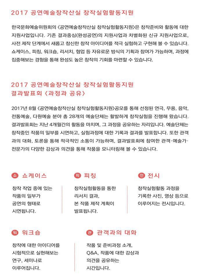 2017 공연예술창작산실 창작실험활동지원 결과발표 <과정과 공유>
