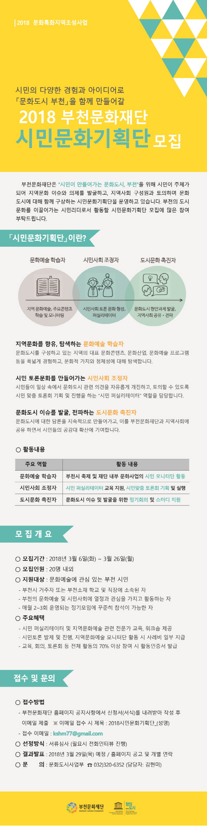 2018 문화특화지역조성사업 <부천문화재단 시민문화기획단> 모집