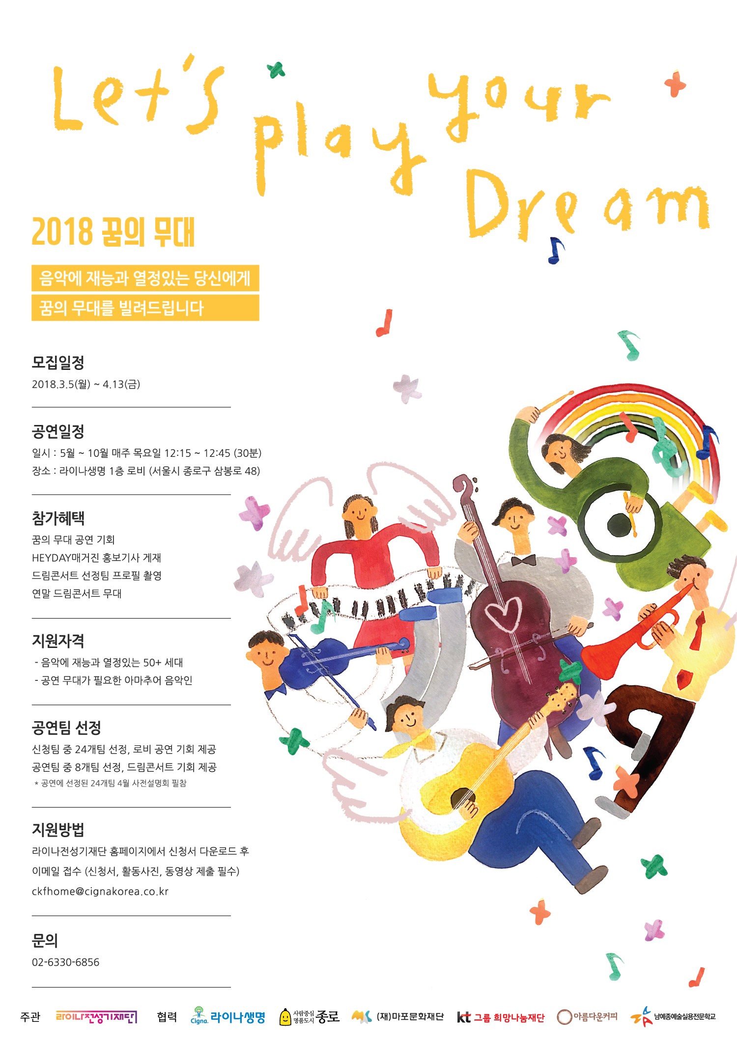 [2018 꿈의 무대 참가자 모집] 음악에 열정을 가진 여러분께, 공연 무대를 빌려드립니다!