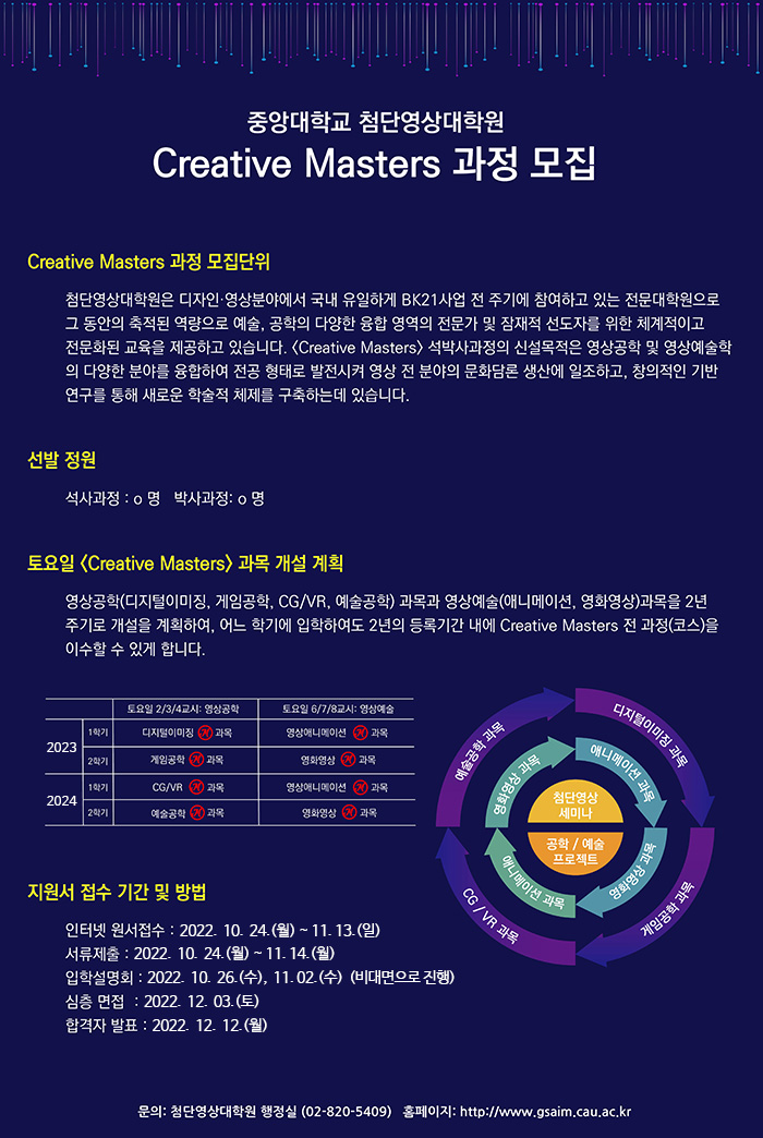 [중앙대학교 첨단영상대학원] <Creative Masters> 2023년도 전기 석·박사과정 신입생 모집