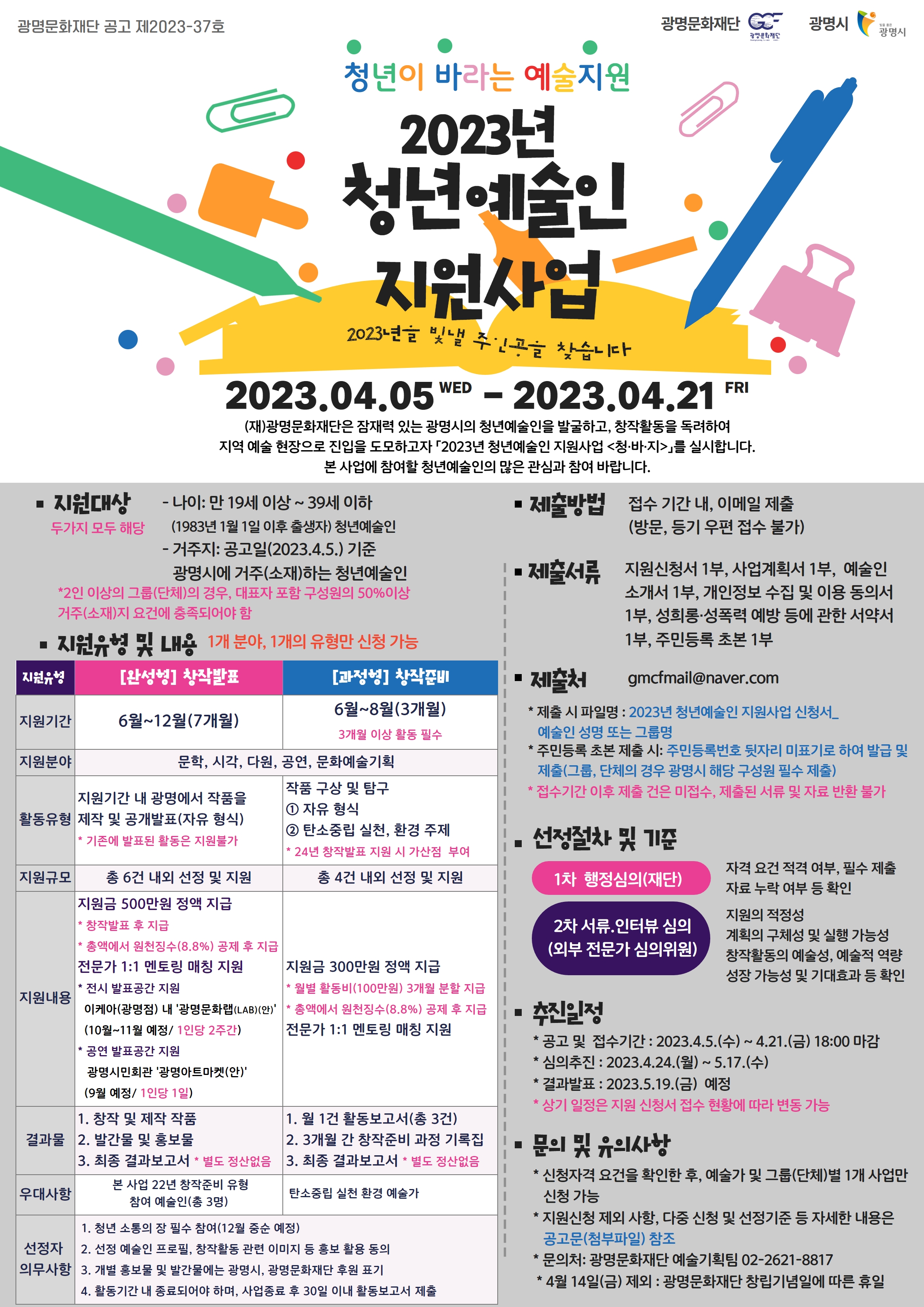 2023년 청년예술가 창작지원사업<청년이 바라는 예술지원(청바지)> 공모