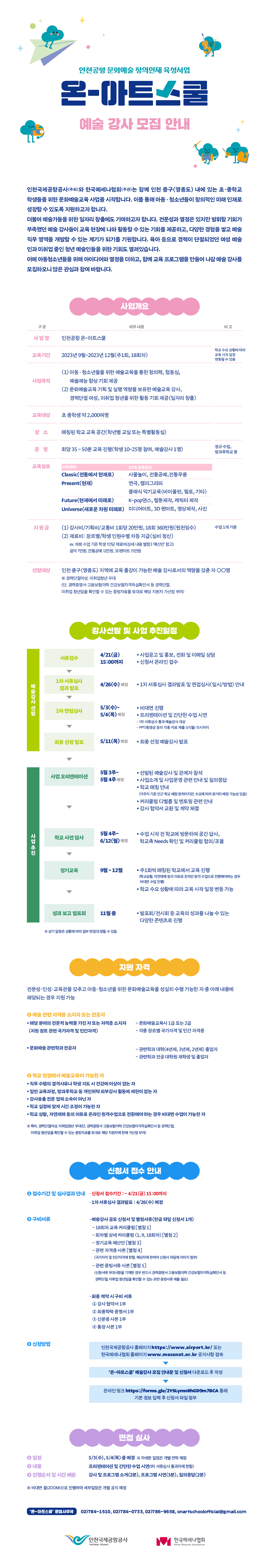 [인천국제공항공사] 문화예술 창의인재 육성사업 '온-아트스쿨' 예술강사 모집
