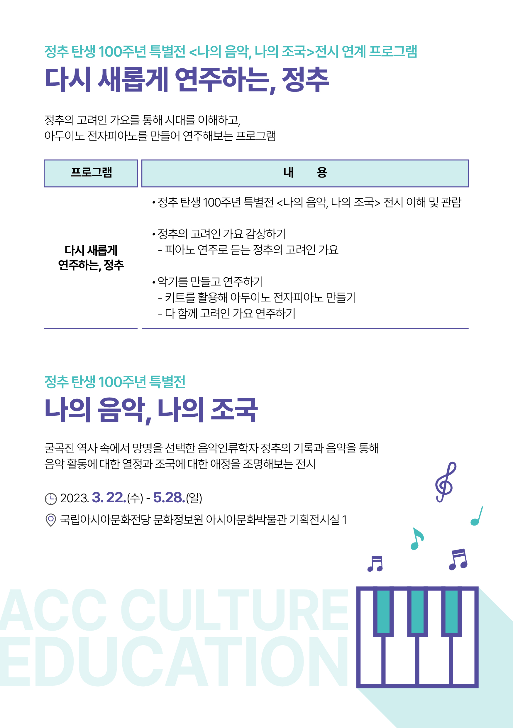 [국립아시아문화전당] ACC 청소년 박물관 전시 연계 교육 - 다시 새롭게 연주하는, 정추