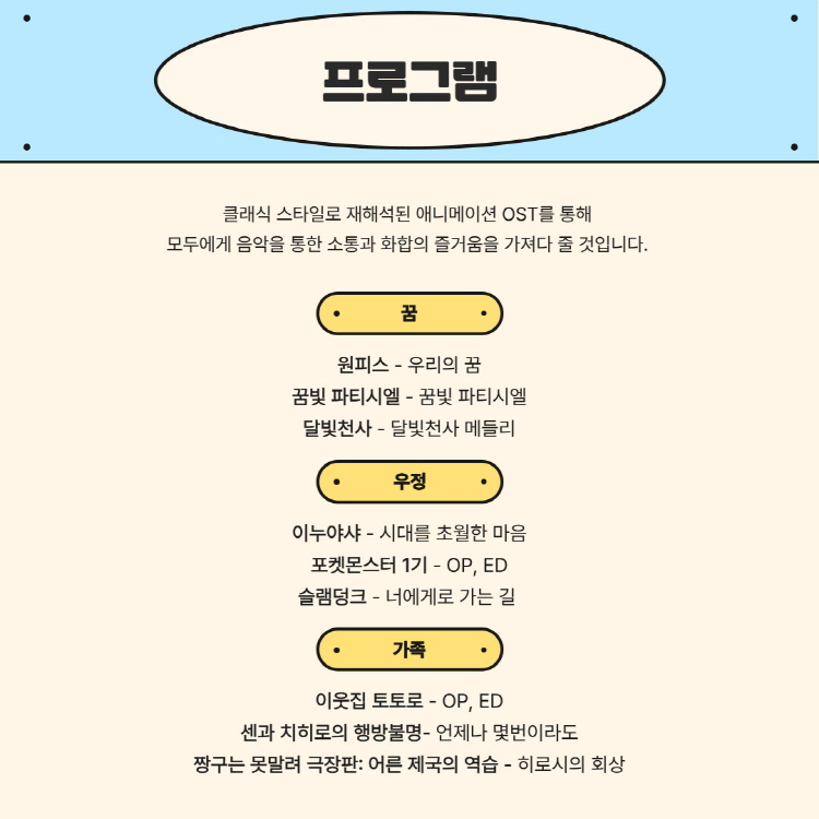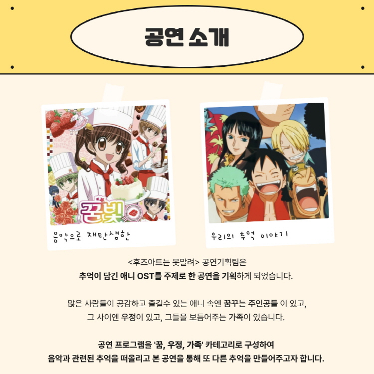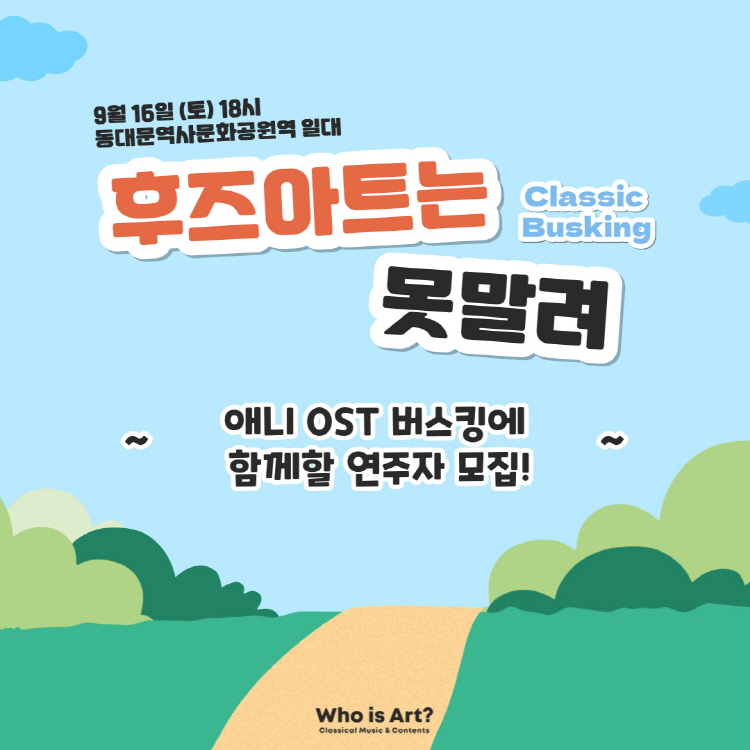 📢 예술기획단체 후즈아트에서 애니 OST로 클래식 버스킹 연주할 프로젝트 단원을 모집합니다