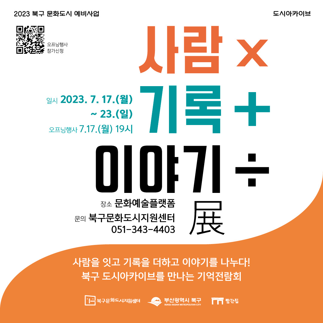 2023 북구문화도시 예비사업 도시아카이브 결과공유회 '사람x 기록+ 이야기÷展'에 여러분을 초대합니다.