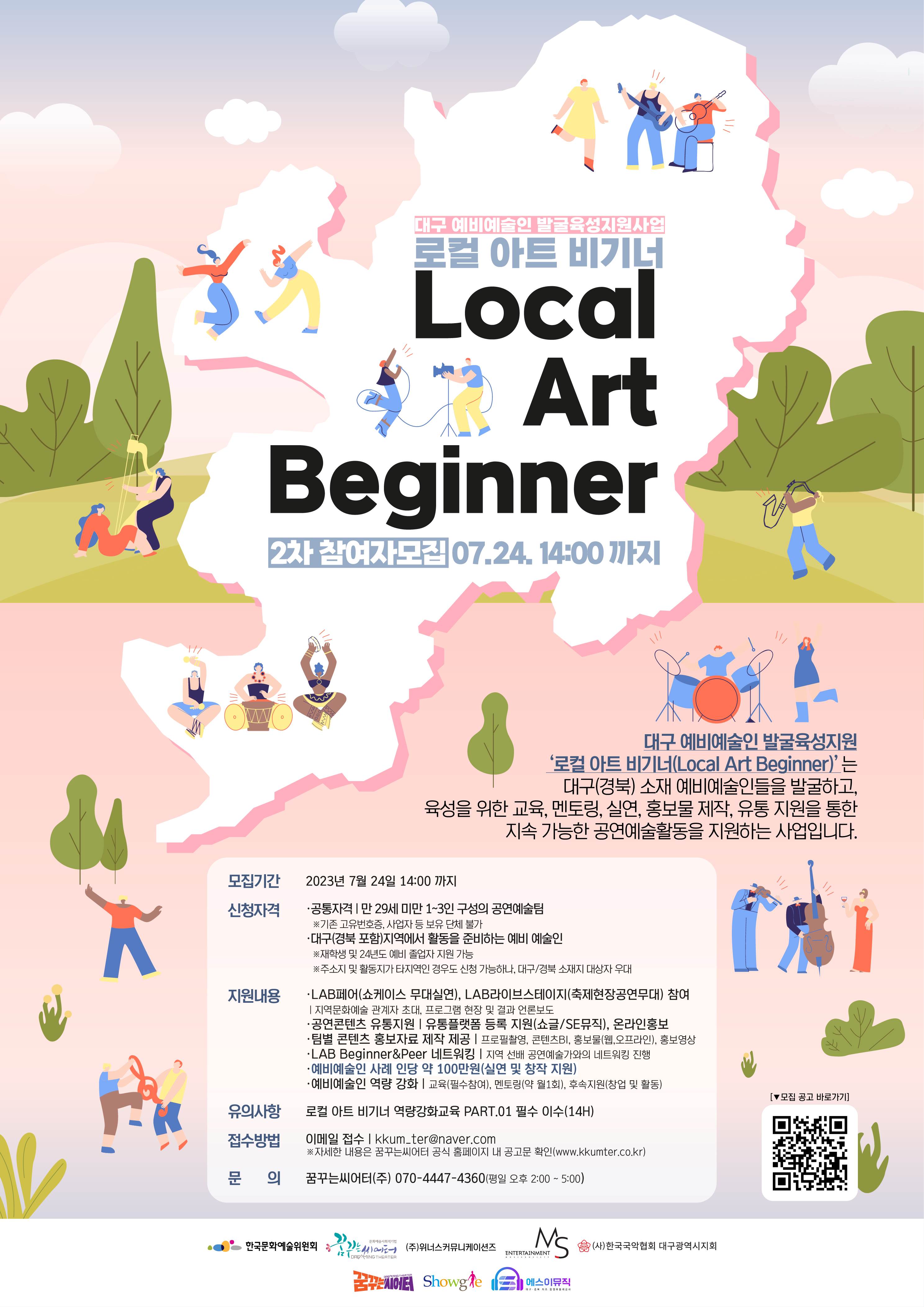 대구(경북)를 중심으로 지속 가능한 공연예술활동을 희망하는 대구 예비예술인 발굴육성지원사업 “로컬 아트 비기너(Local Art Beginner)”를 참여할 예비예술인을 모집합니다.