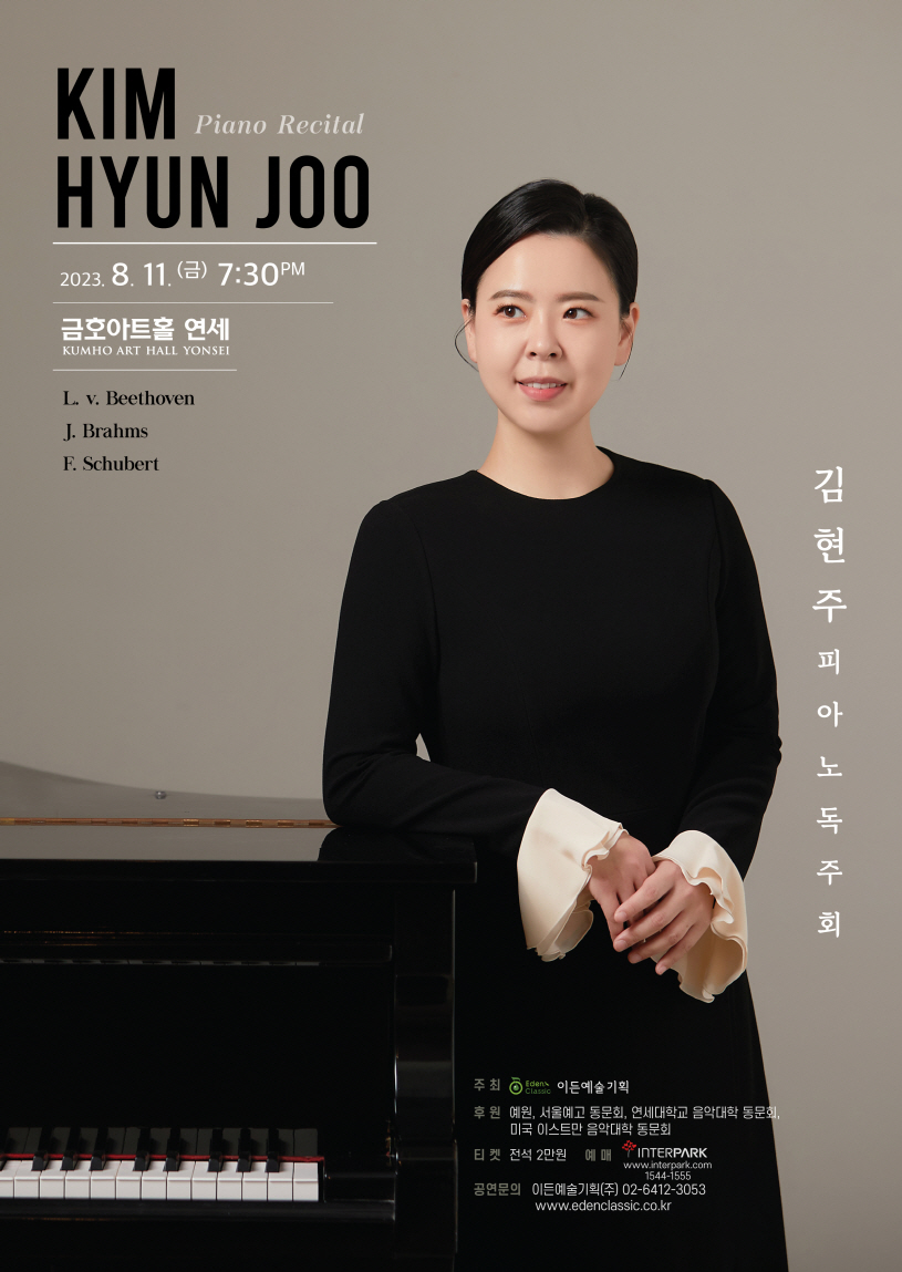 미국 UC Santa Barbara와 SUNY New Paltz의 Summer Academy, 잘츠부르크 Mozarteum Summer Festival 수료 및 연주, 수많은 마스터 클래스를 통해 음악적 소양을 쌓아온 피아니스트 김현주는 예원학교 아이사랑 클래식스쿨, 피아노학회 연주분과/교육분과 위원회, 성결대학교, 인천예고 강사를 역임하였고, 현재 서울사이버대학교 대우교수로 재직 중이다.