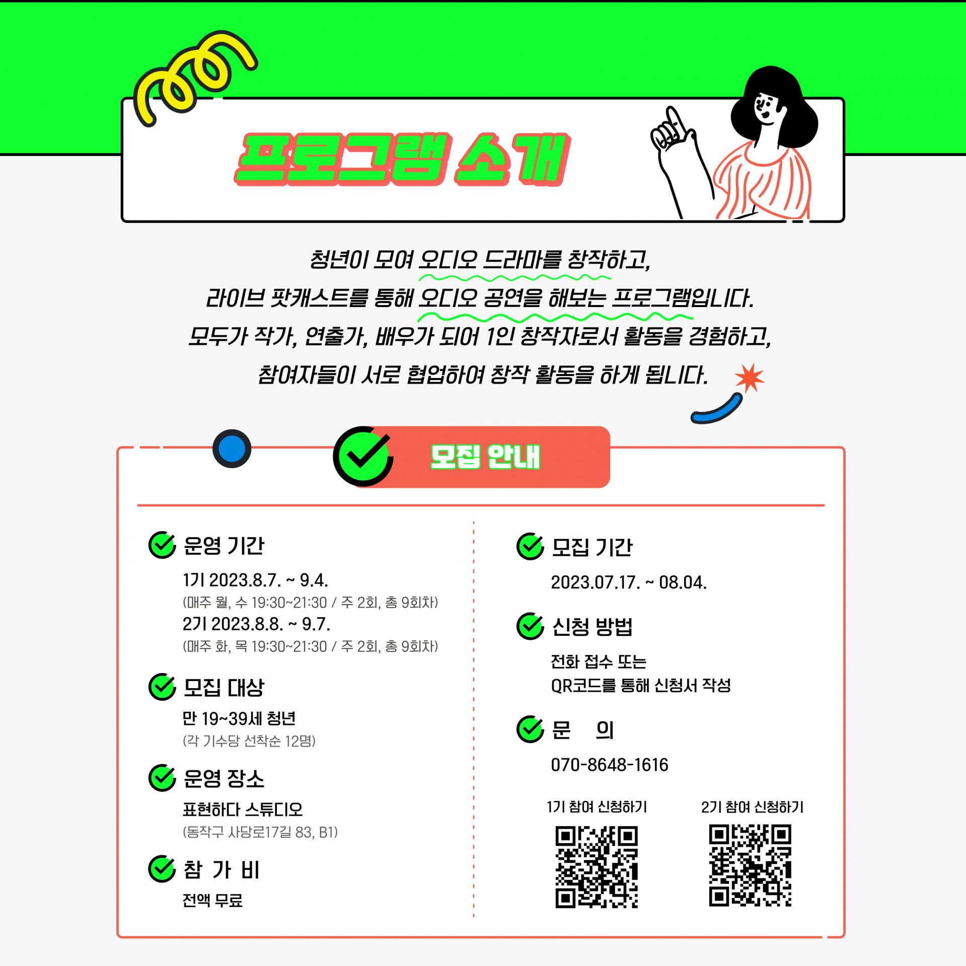 그럼 오디오 드라마를 만들어 보고 싶은 청년분들의