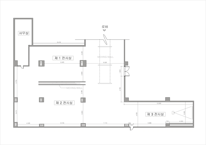 * 24년 1월 전시장 천장 및 가벽 제거 공사 예정으로 기존 전시장에서 첨부 도면과 같이 변경될 예정이오니 참고 바랍니다. 상기 도면은 내부 사정에 따라 일부 변경될 수 있습니다.