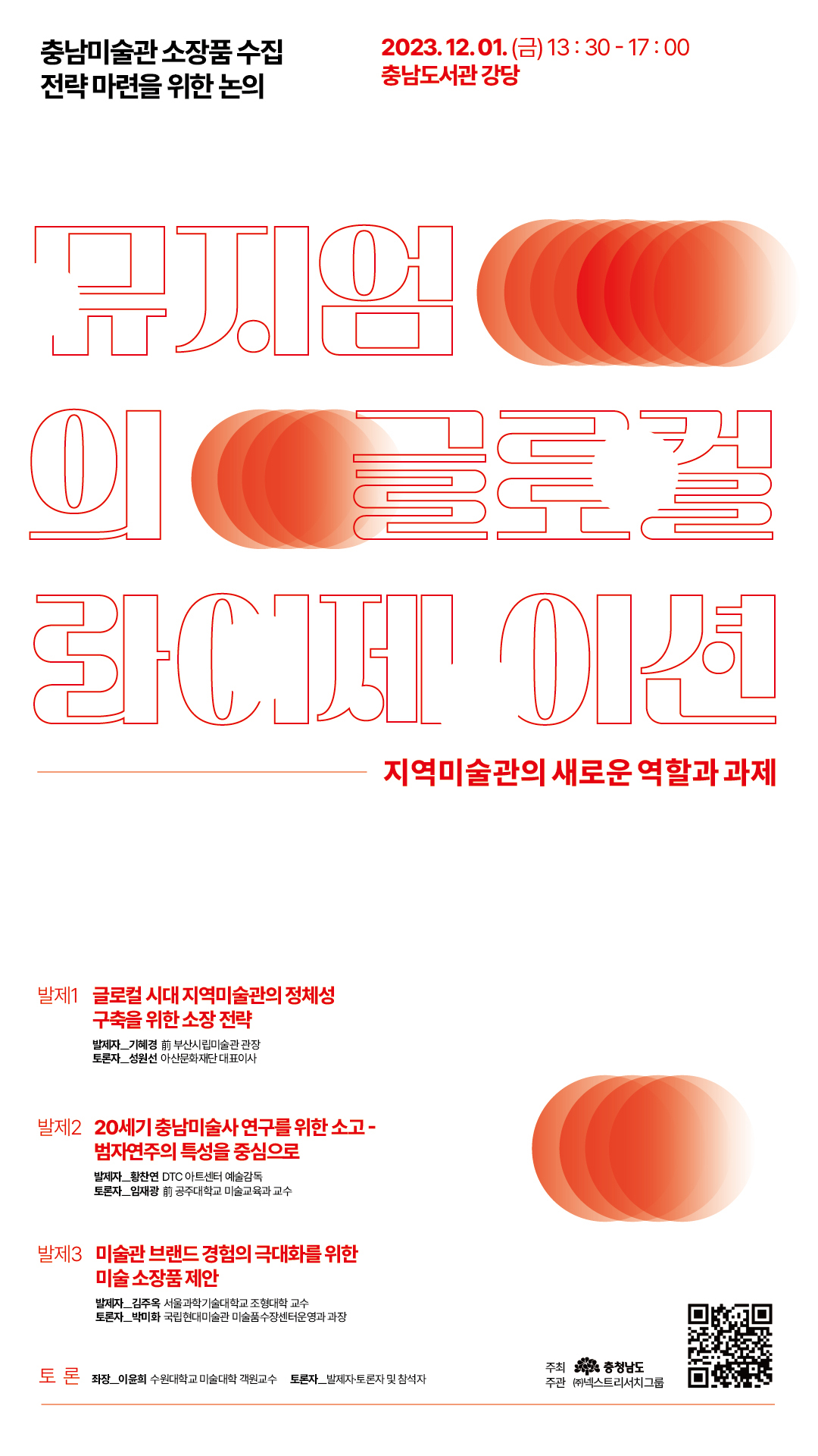 충남미술관 개관과 관련해 국내 미술 현장 및 학계 전문가분들을 모시고 공개토론회를 개최하고자 합니다.