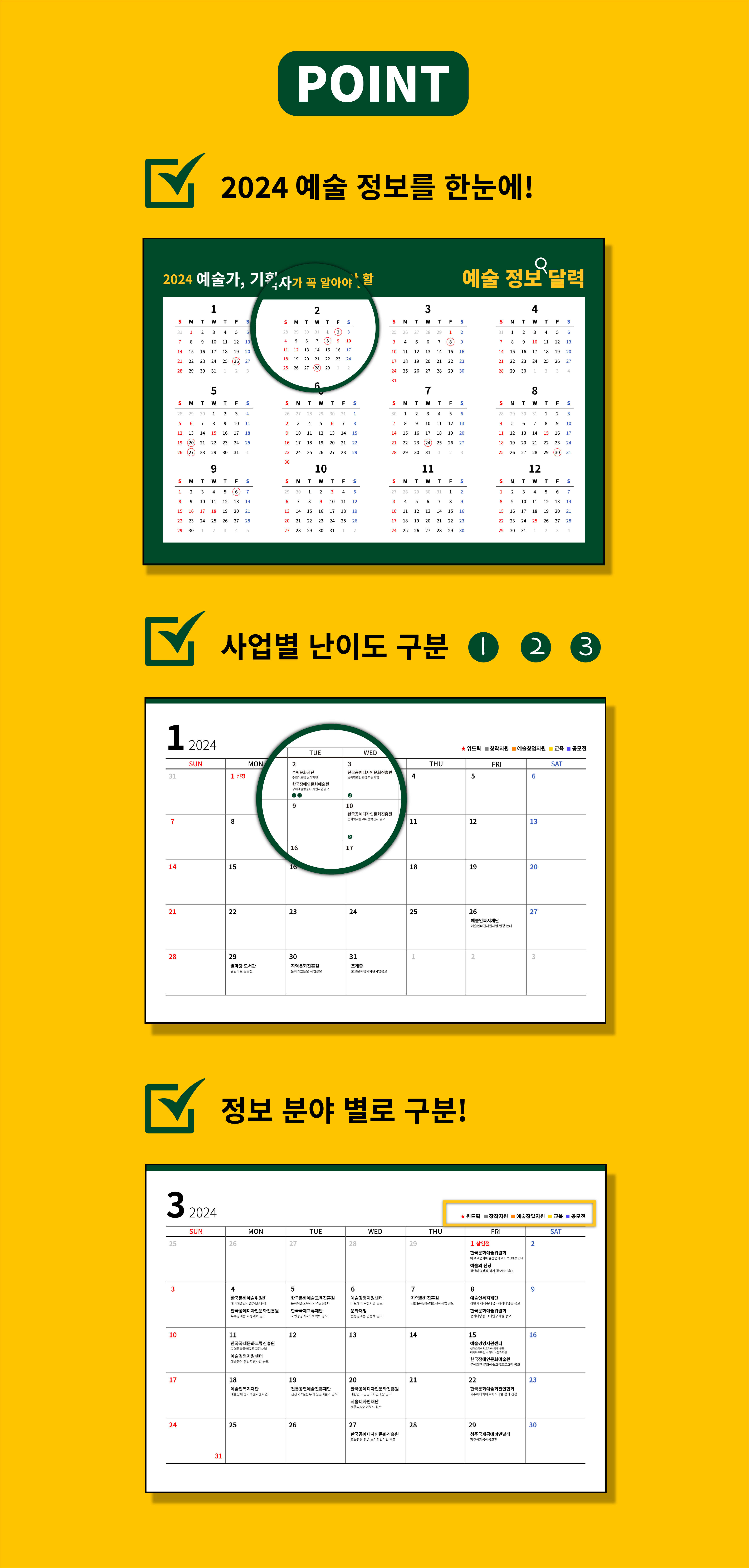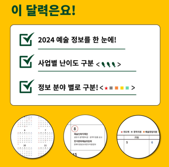 바로 " 2024년 예술가, 기획자가 꼭 알야아 할 예술정보달력" 입니다.