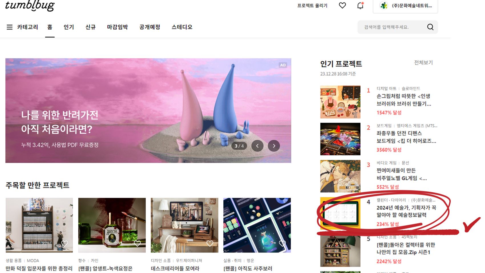 펀딩 하루만에 240프로 달성, 인기프로젝트 4위