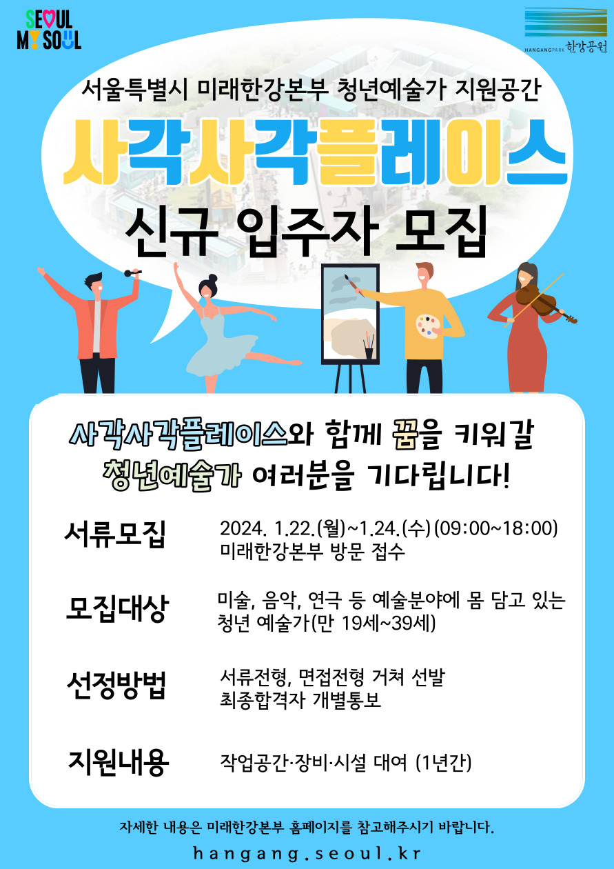 한강공원에서 예술활동을 펼칠 청년예술가를 모집합니다.