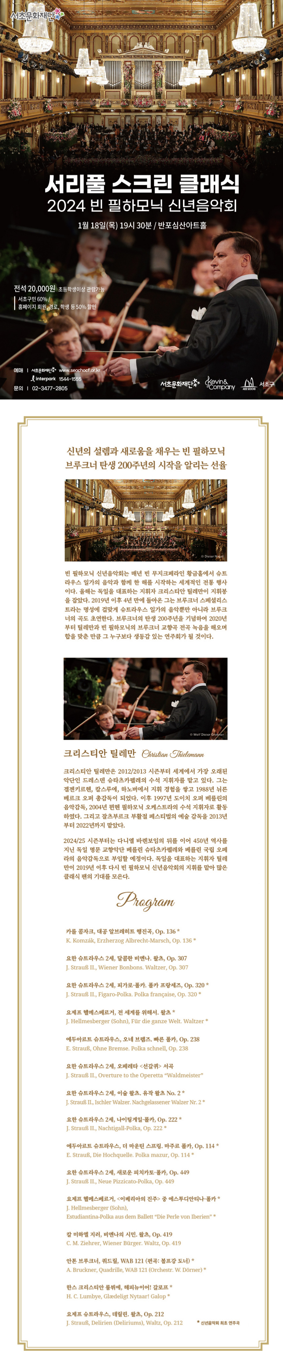 [서초문화재단] 서리풀 스크린 클래식 "2024 빈 필하모닉 신년음악회" 실황 상영